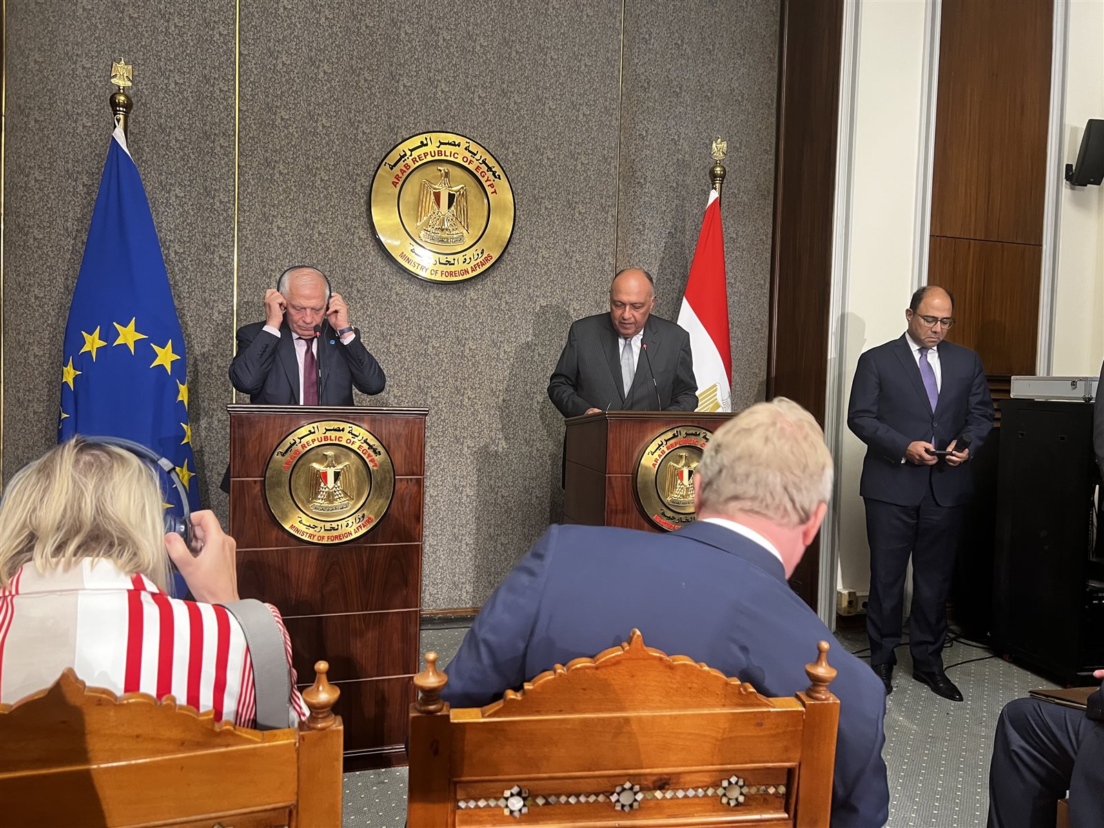 وأكد خلال مؤتمر صحفى اليوم الأحد بمقر وزارة الخارجية بماسبيرو كورنيش النيل، مع جوزيب بوريل، الممثل الأعلى للاتحاد الأوروبي للشئون الخارجية والسياسة الأمنية ونائب رئيسة المفوضية الأوروبية، أن إلغاء اجتماع بين الاتحاد الأوروبي والجامعة العربية نظرا لاستئناف سوريا لمقعدها بجامعة الدول العربية يعد قرارا مؤسفا.