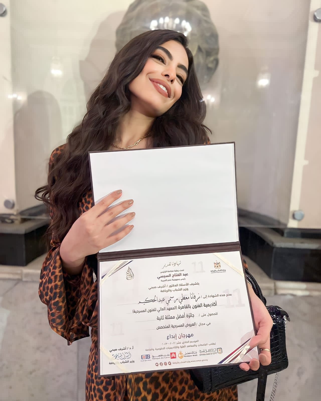 وتابعت: "للجائزة مذاق مختلف خاصة أنها الأولى التي أحصدها باسم المعهد العالي للفنون المسرحية ممثلة عنه".