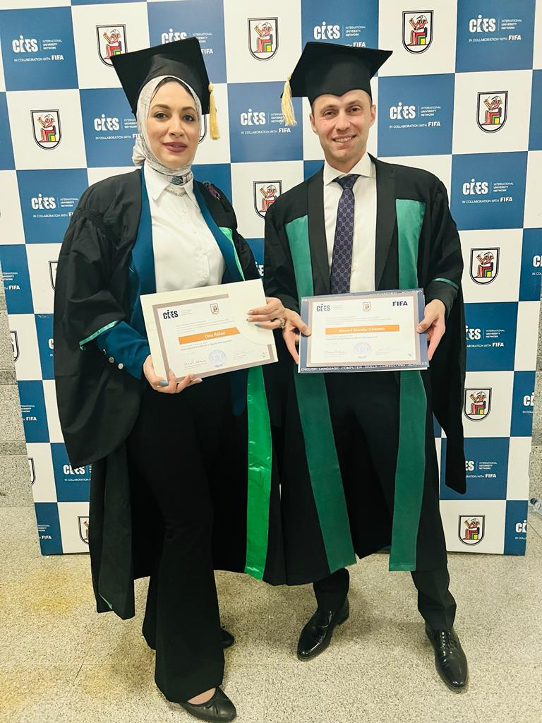 أحمد شوقي غريب ودينا الرفاعي يحصلان على دبلومة الإدارة الرياضية من الفيفا