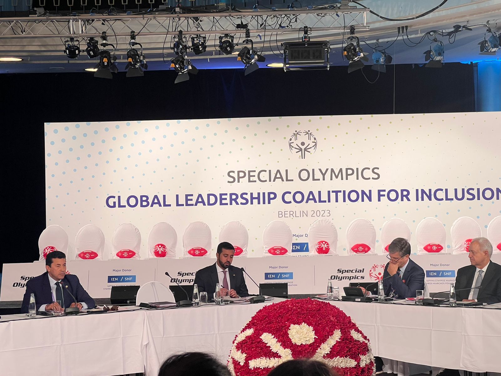 حضر الاجتماع توم فيورد رئيس جمعية مؤسسي الألعاب العالمية، المهندس أيمن عبد الوهاب الرئيس الإقليمي للأولمبياد الخاص، ولفيف من الوزراء ومنهم وزراء دول "جاميكا، كوستاريكا، الإمارات"