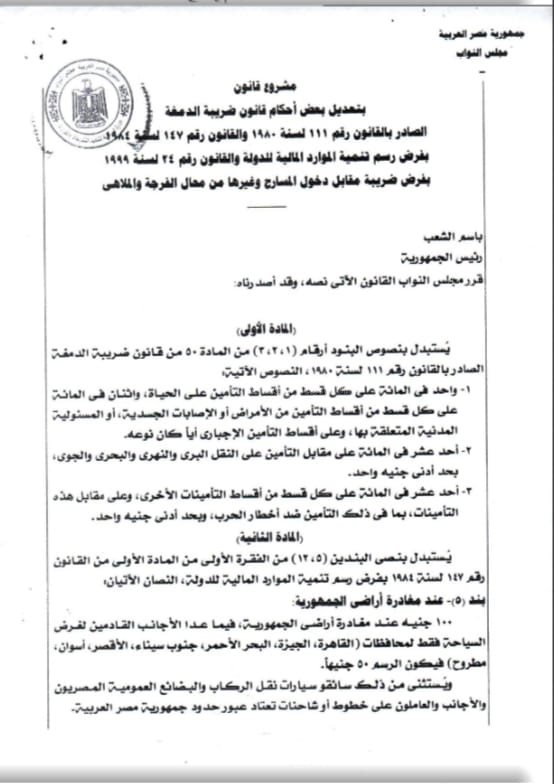 تعديلات قانون ضريبة الدمغة