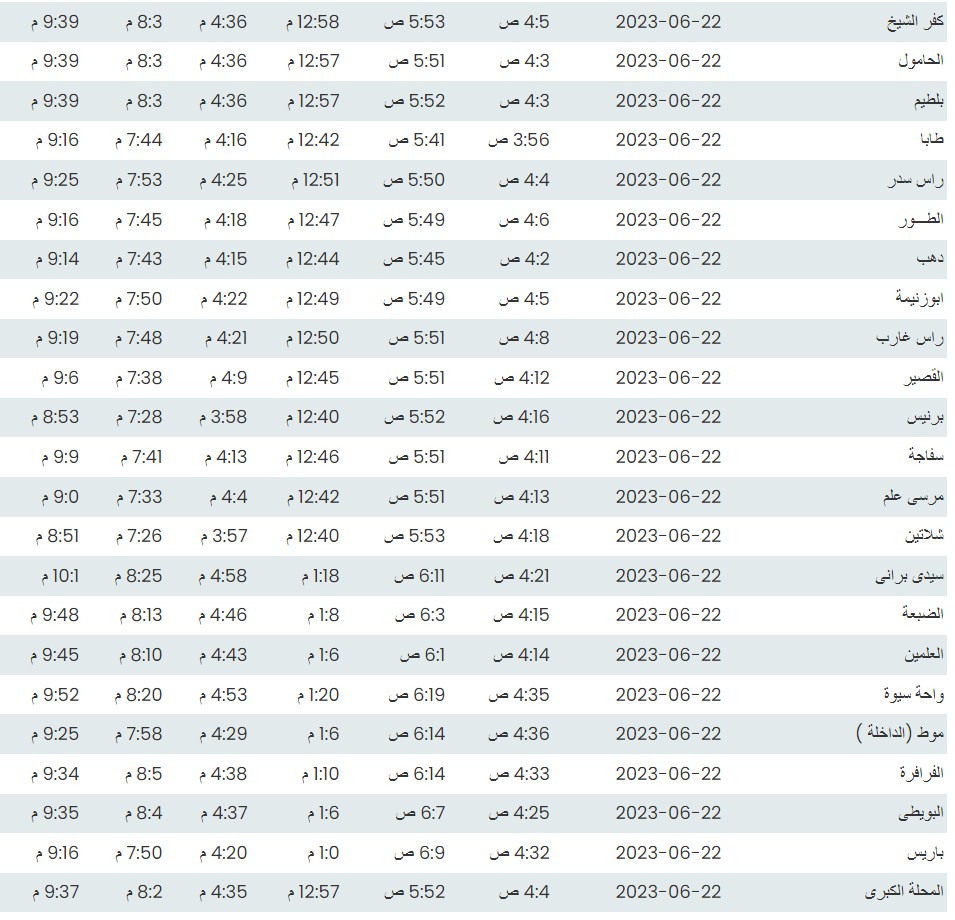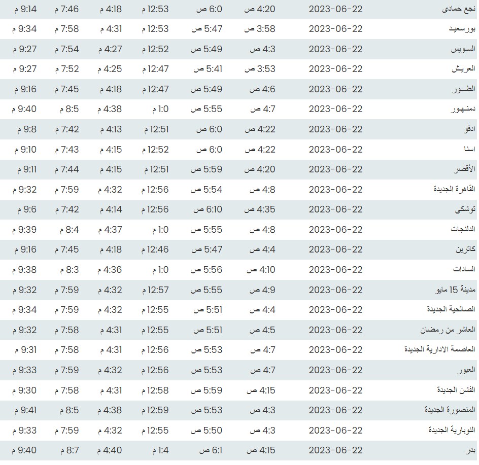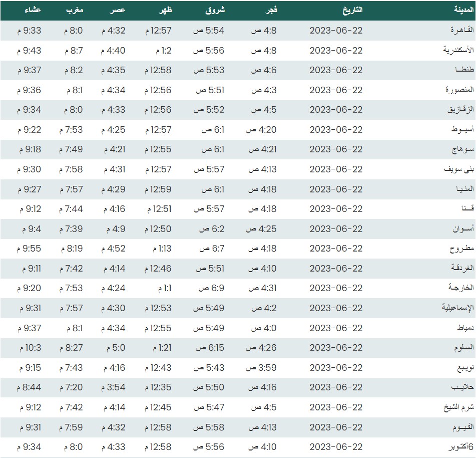 مواقيت الصلاة اليوم بتوقيت القاهرة