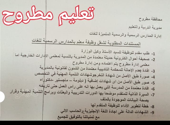 مسابقة لسد عجز معلمي العلوم والرياضيات واللغة الإنجليزية بمدارس مطروح (صور)