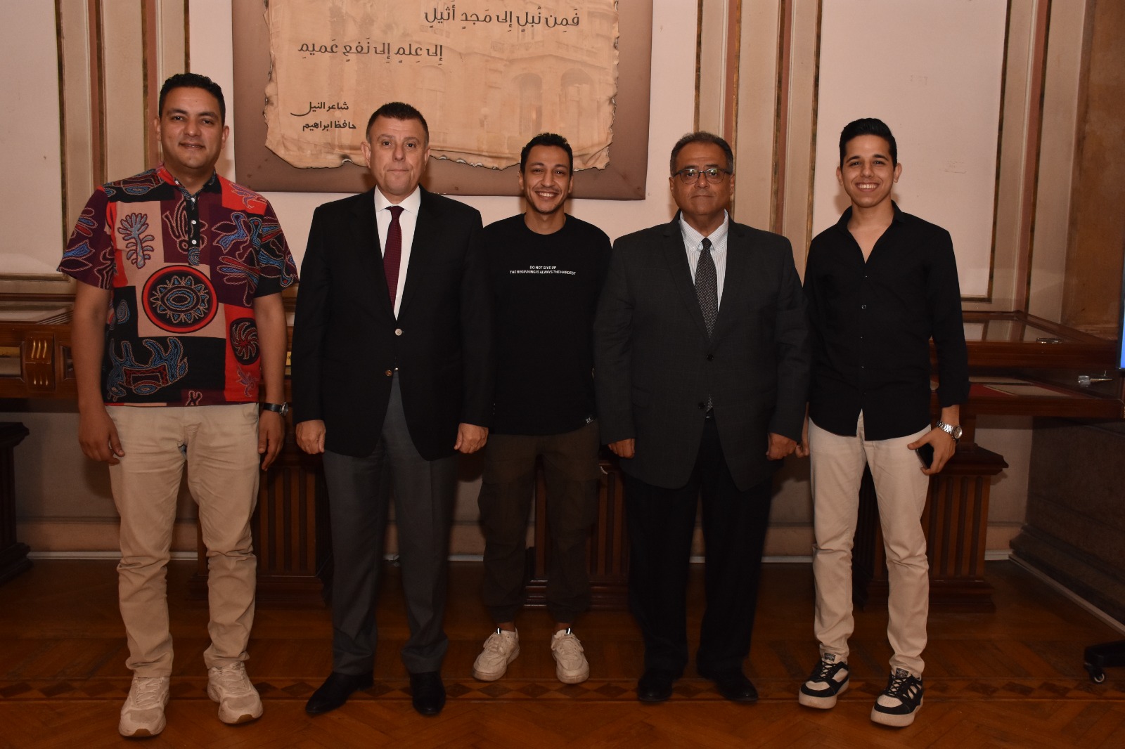 حيث التقى محمود المتينى رئيس الجامعة وعبد الفتاح سعود نائب رئيس الجامعة لشئون التعليم والطلاب بالقادة الثلاث كورالات "محمود وحيد و محمود صابر و محمود “شيتوس”،
