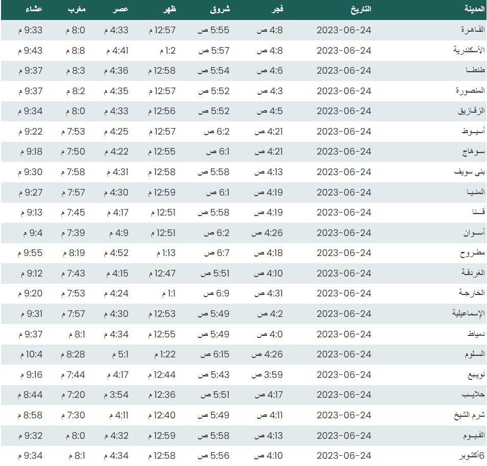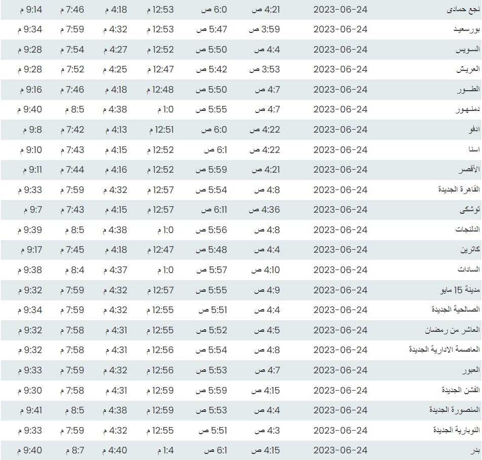 مواقيت الصلاة اليوم بتوقيت القاهرة
