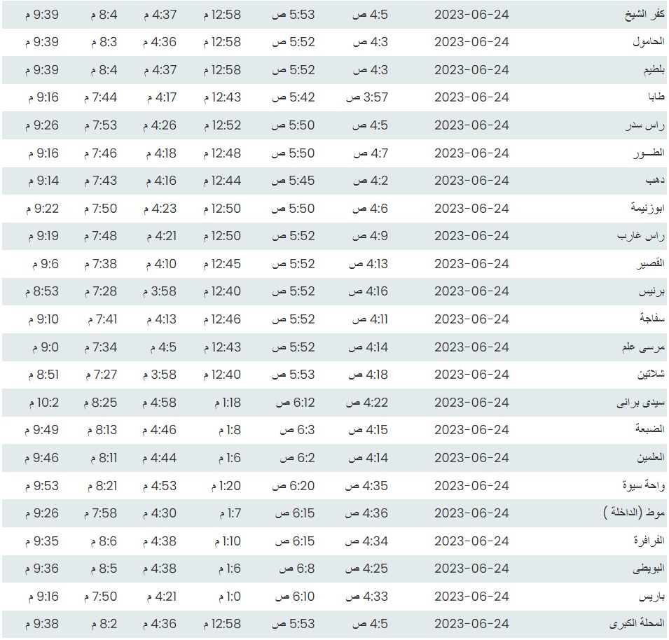 مواقيت الصلاة اليوم بتوقيت الإسكندرية