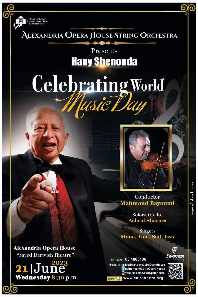 وينطلق الحفل بمشاركة أوركسترا وتريات أوبرا الإسكندرية مع الموسيقار هاني شنودة.