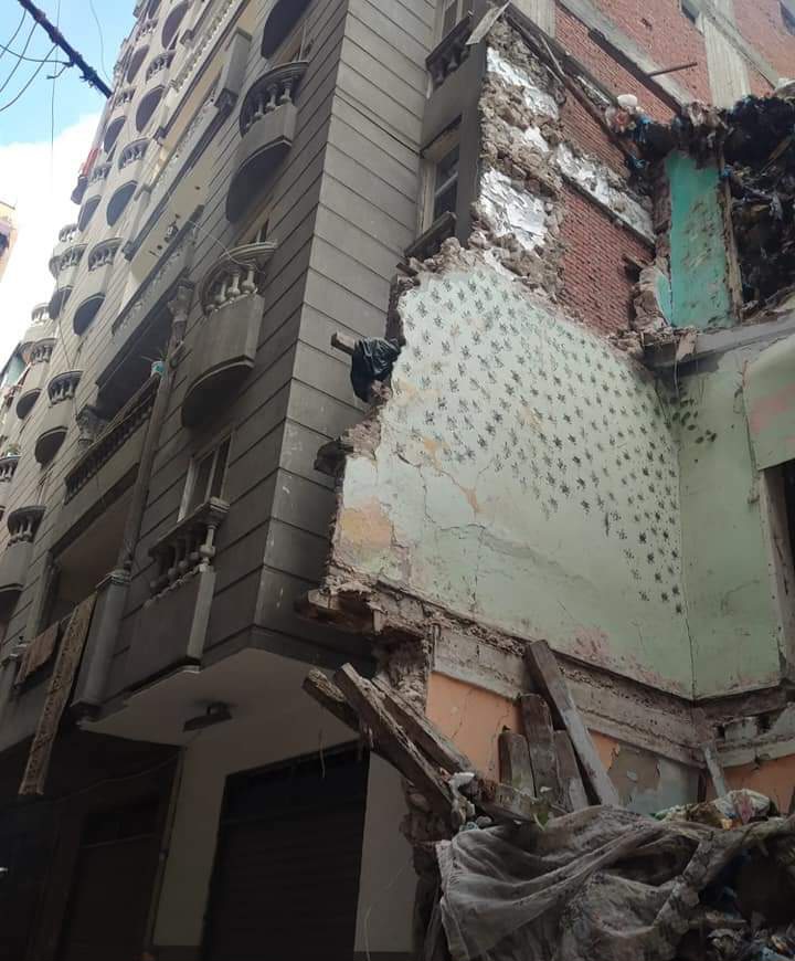 تساقط أجزاء من عقار قديم باللبان في الإسكندرية