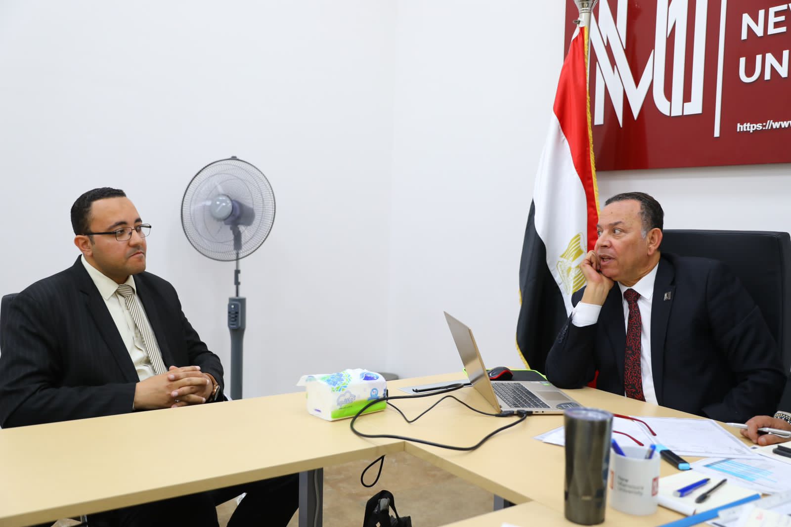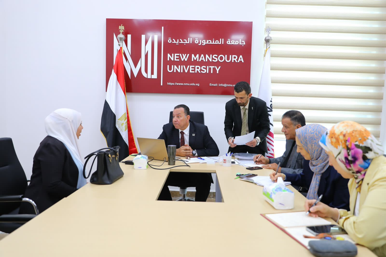 رئيس جامعة المنصورة الجديدة يجري مقابلات المتقدمين لشغل الوظائف