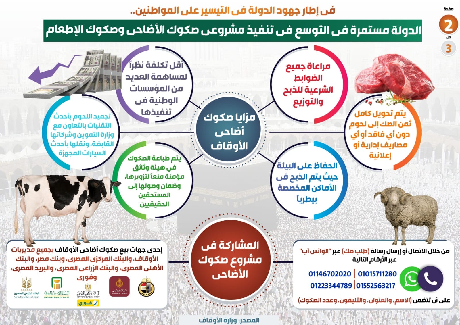 الأوقاف تنشر إنفو جراف عن إنجازات مشروع صكوك الأضاحي والإطعام