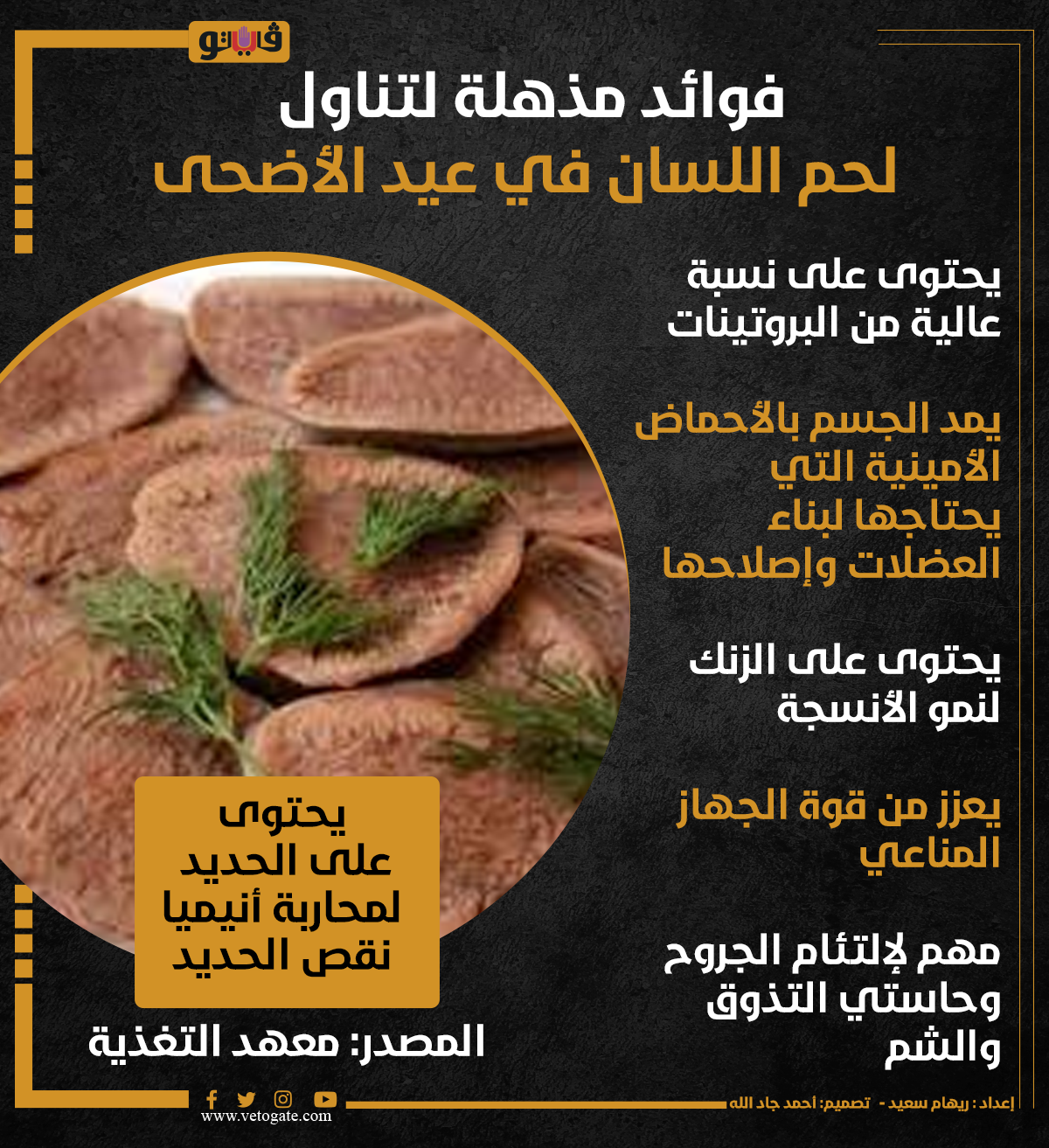 فوائد مذهلة لتناول لحم اللسان في عيد الأضحى (انفوجراف) الأربعاء 21/يونيو/2023 - 01:06 م 6/21/2023 1:06:07 PM فوائد تناول لحم اللسان في عيد الأضحى، فيتو ريهام سعيد شارك طباعة 18 حجم الخط شارك طباعة الاطعمة المفيدة الجهاز المناعي التئام الجروح أمراض القلب الدهون المشبعة معهد التغذية نقص الحديد