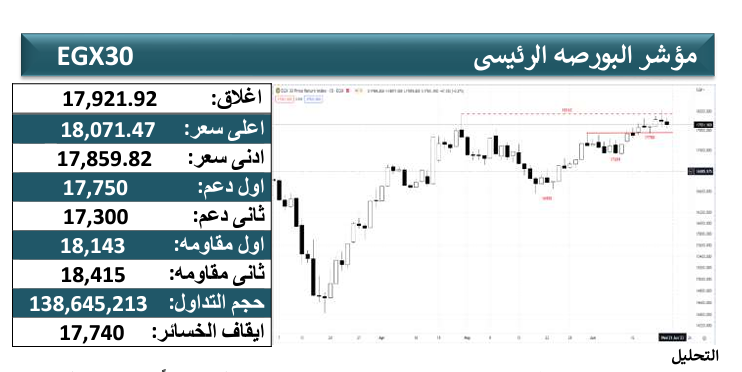 يشهد سوق الأوراق المالية مرحلة مختلفة وحالة من التقدم الحذر الحكيم بصعودة المتتالى والممتد على مدار ما يقارب الثلاثة أشهر، والذى شاهدناه ببداية تعاملات جلسة الاسبوع وهو الأمر الذى توقعه خبراء سوق المال خلال الأيام التى مضت، وخاصة بعد تثبيت أسعار الفائدة فى الفيدرالى، وهو الأمر الذى أنعكس بالايجاب على مؤشرات السوق المصرى والعربى، حيث شهدت مؤشرات البورصة انخفاضا جماعيا بمستهل تعاملات حركة أمس الاربعاء، حيث أغلق مؤشر EGX30 أمس على وتيرة متصاعدة للمؤشر الرئيسى للبورصة المصرية EGX30 عند 17921 نقطة على وتيرة ايجابية.