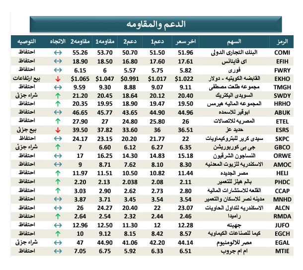 نقاط الدعم والمقاومة واتجاه المؤشرات