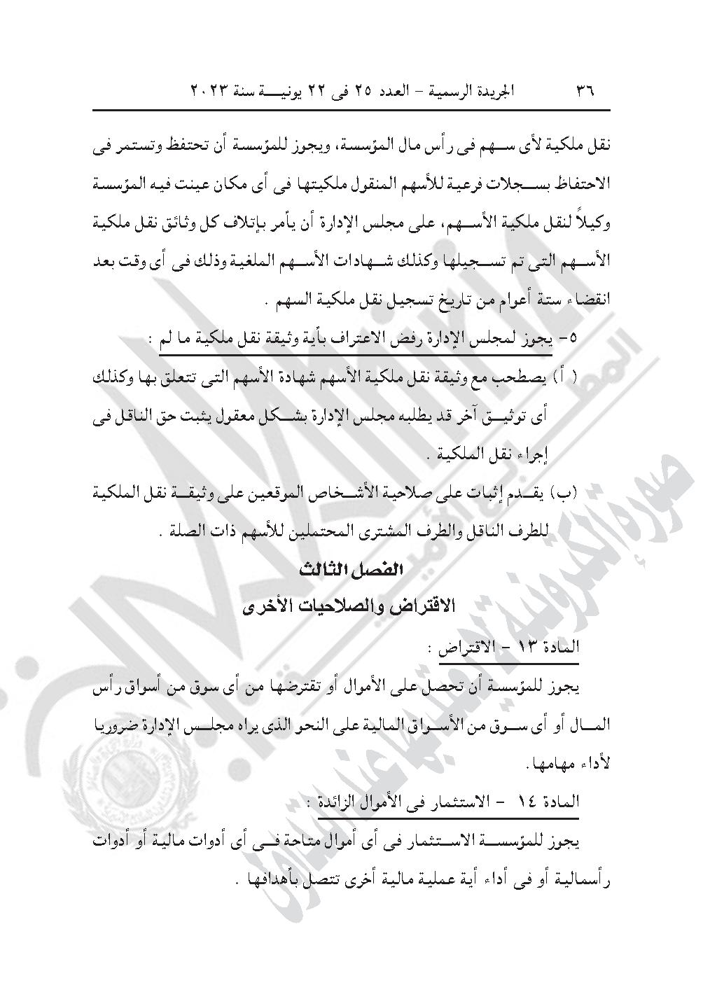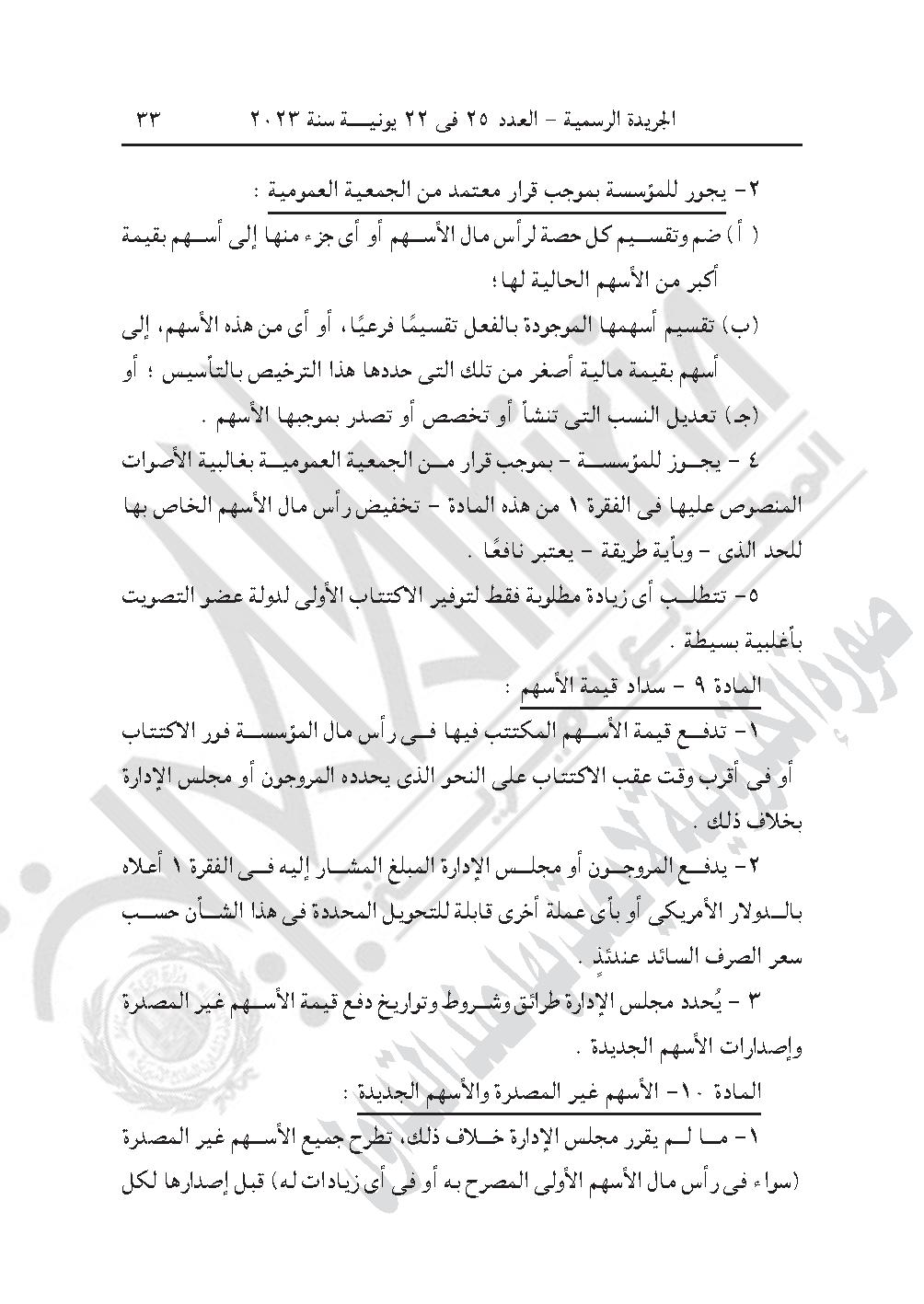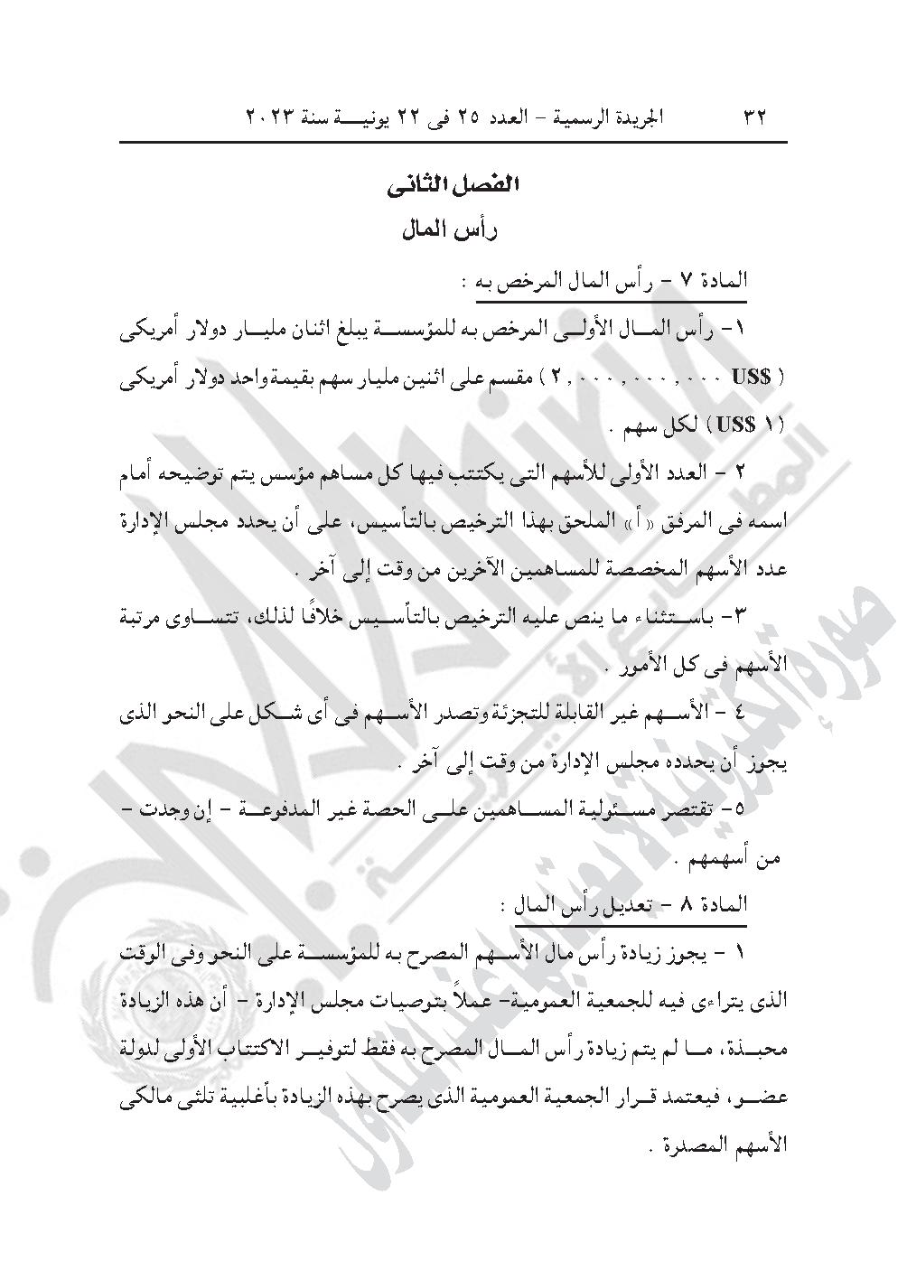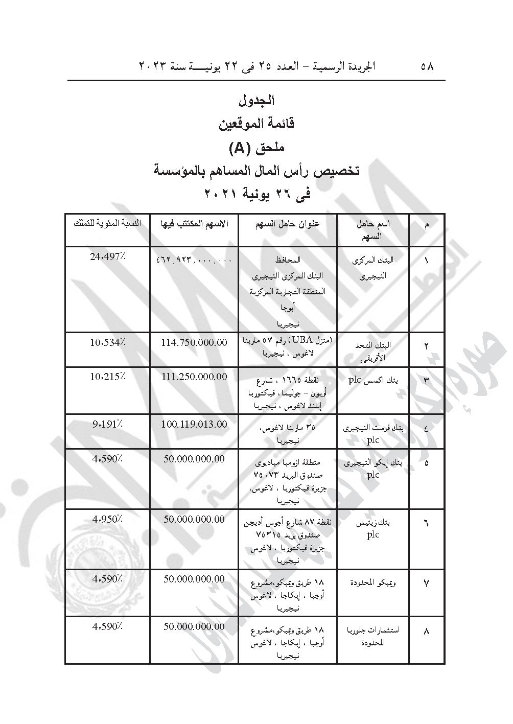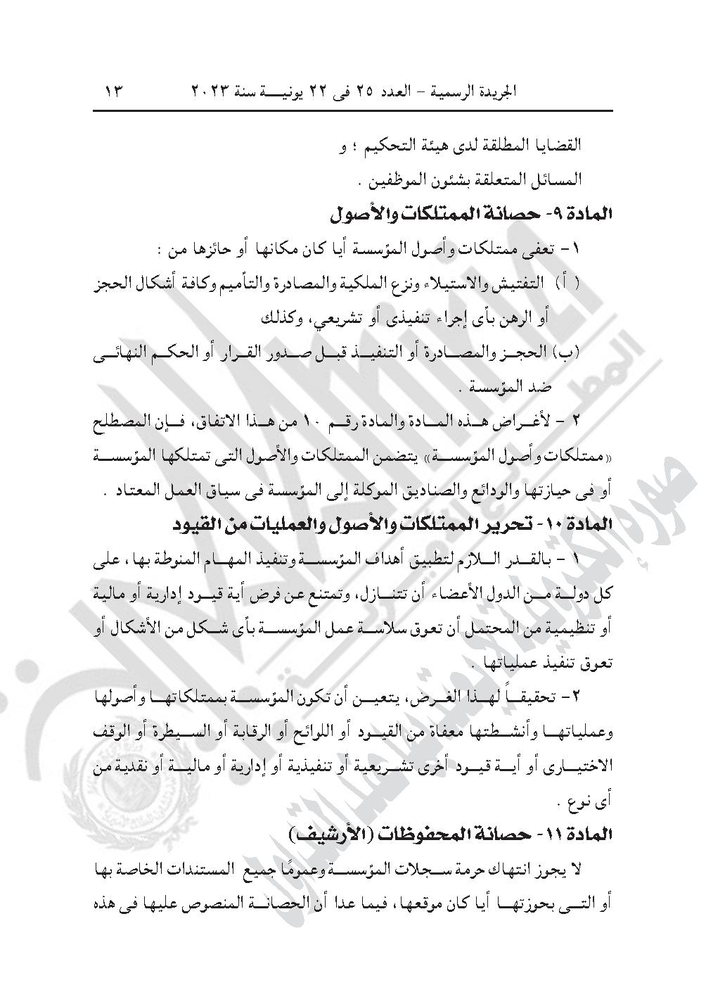 نشرت الجريدة الرسمية في عددها رقم 25، الصادر في 22 يونية 2023، قرارا جمهوريا جديدا لرئيس الجمهورية عبد الفتاح السيسي، رقم 592 لسنة 2022، بشأن الموافقة على اتفاق انضمام حكومة جمهورية مصر العربية إلى عضوية مؤسسة التمويل الأفريقية.
