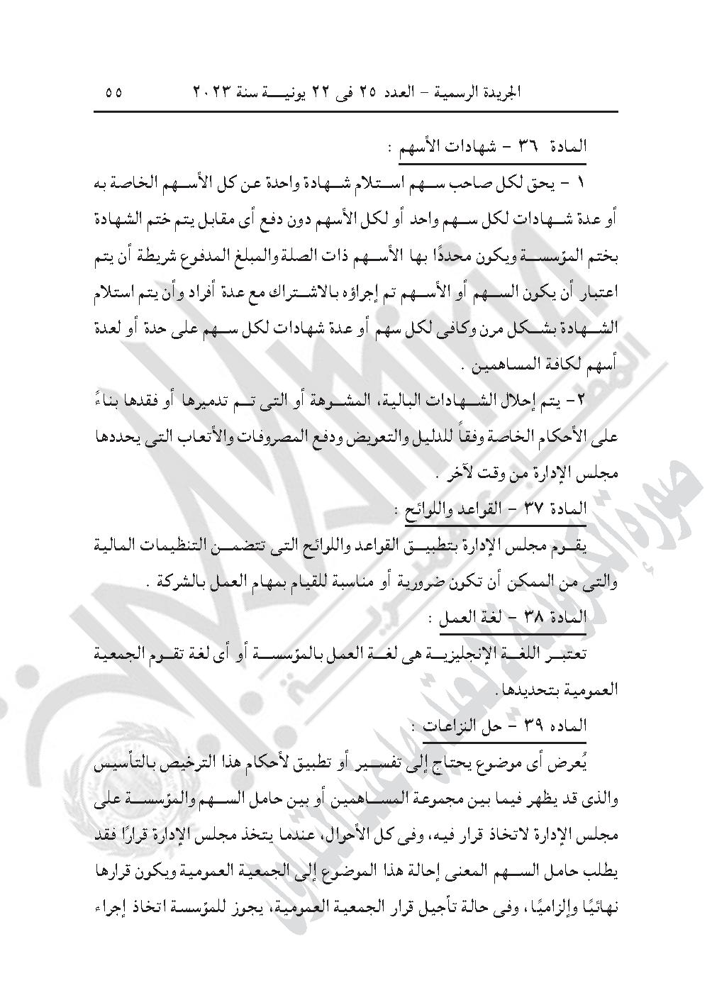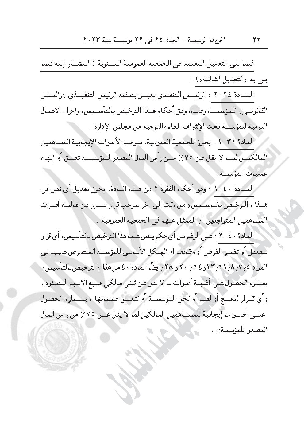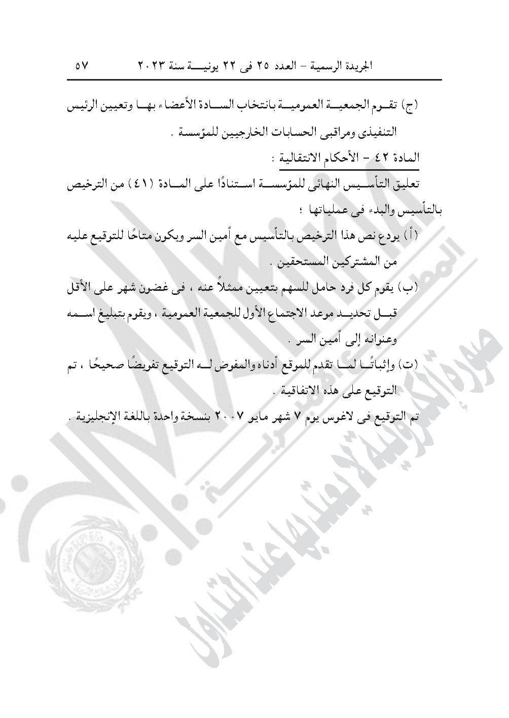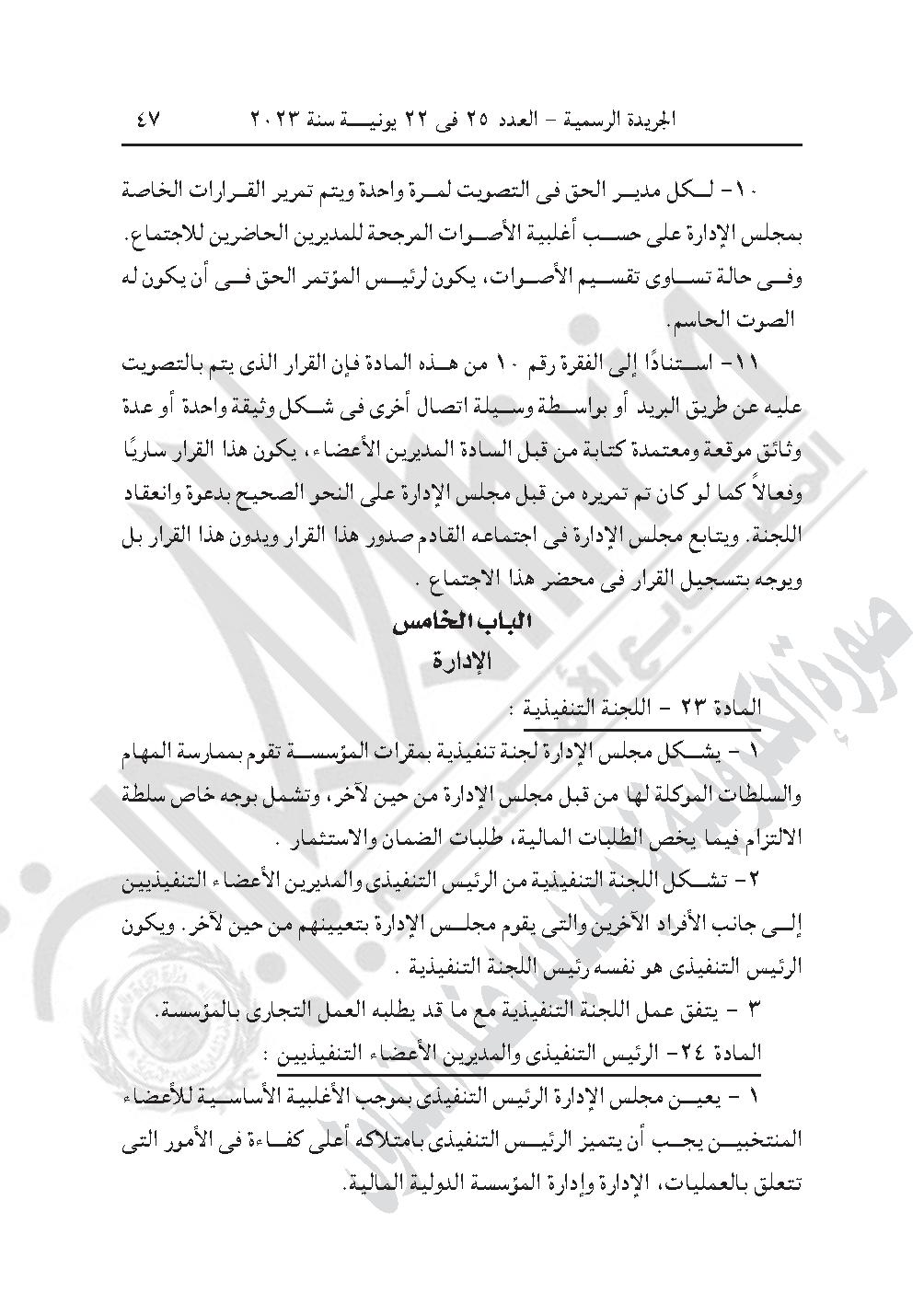 نشرت الجريدة الرسمية في عددها رقم 25، الصادر في 22 يونية 2023، قرارا جمهوريا جديدا لرئيس الجمهورية عبد الفتاح السيسي، رقم 592 لسنة 2022، بشأن الموافقة على اتفاق انضمام حكومة جمهورية مصر العربية إلى عضوية مؤسسة التمويل الأفريقية.