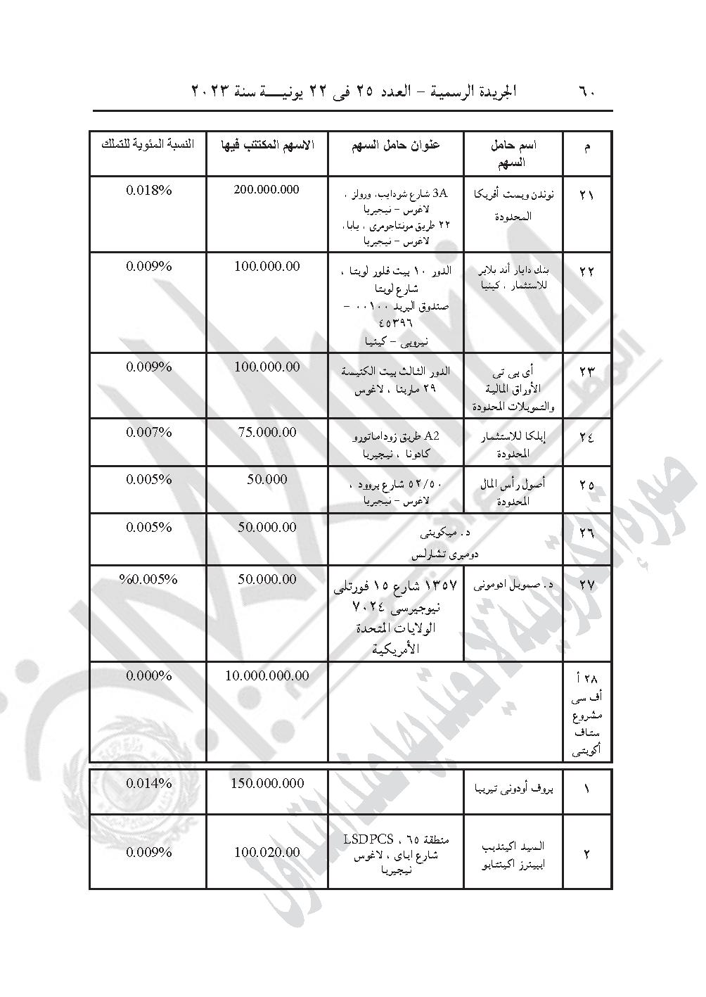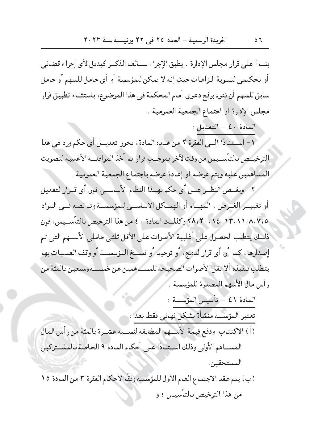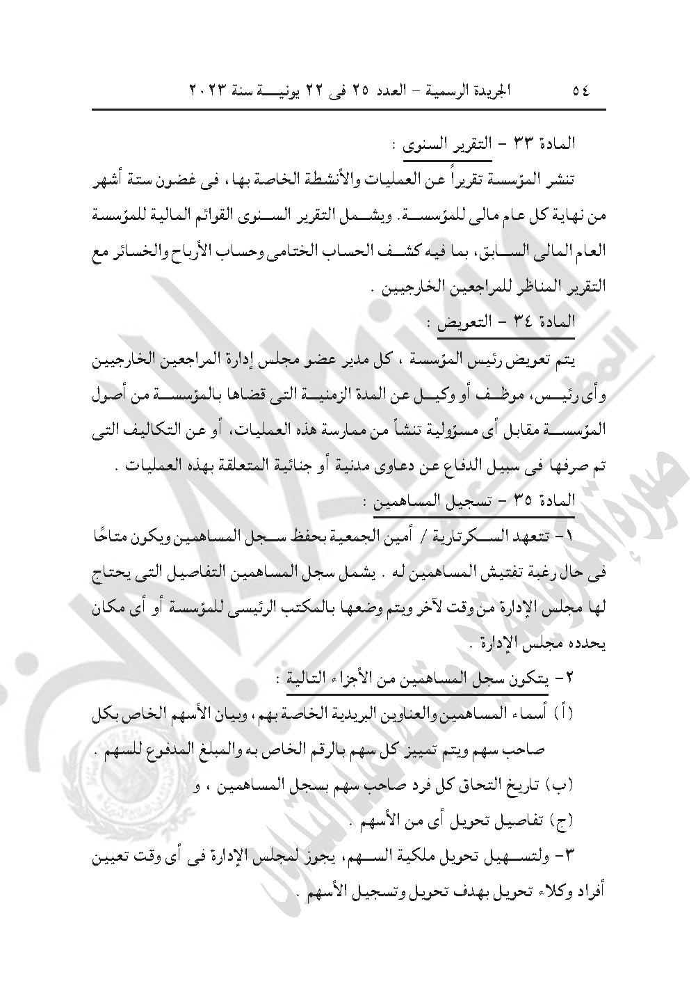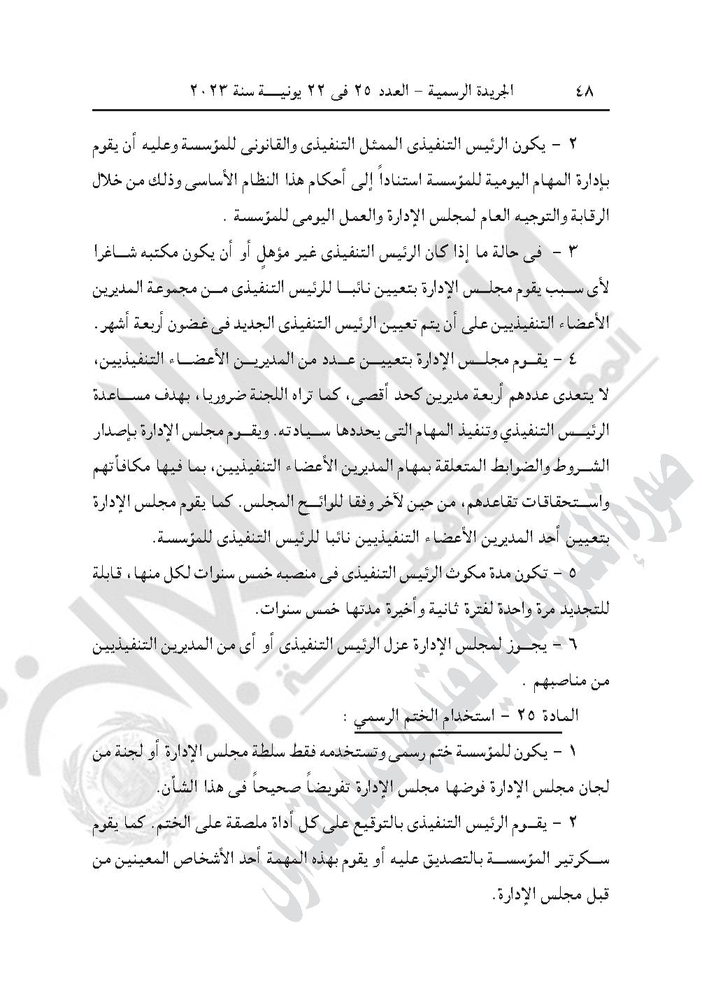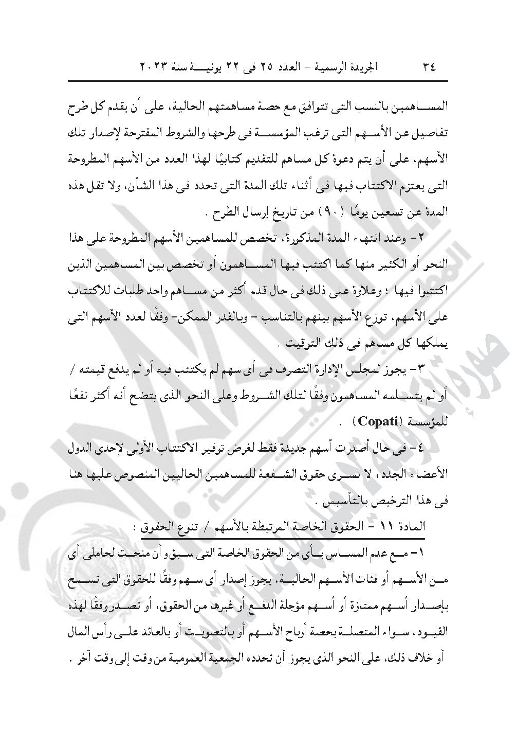 نشرت الجريدة الرسمية في عددها رقم 25، الصادر في 22 يونية 2023، قرارا جمهوريا جديدا لرئيس الجمهورية عبد الفتاح السيسي، رقم 592 لسنة 2022، بشأن الموافقة على اتفاق انضمام حكومة جمهورية مصر العربية إلى عضوية مؤسسة التمويل الأفريقية.