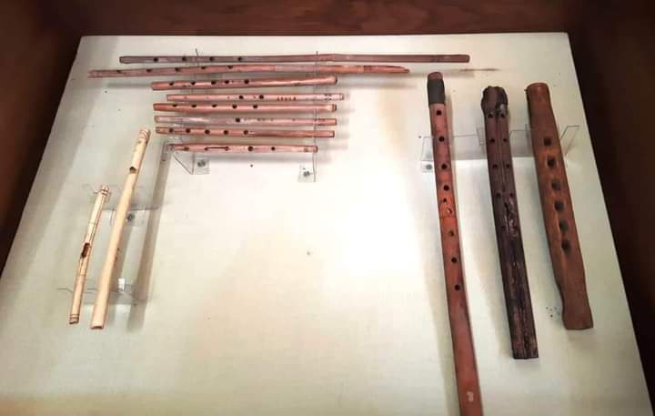 كما يعرض المتحف مجموعة من آلات الفلوت المفرد والمزدوج المصنع من البوص وقطعتين من الجلد الملون كانوا غطائين لطبلة تم إكتشافهما في أخميم من العصر المتاخر. وهذه المجموعة مصنوعة من مواد مختلفة مثل البرونز والخشب والعاج والخشب المذهب من عصري الدولة الحديثة والمتأخر وتم اكتشافها في عدة مناطق مثل سقارة وأبيدوس والأقصر وصان الحجر.