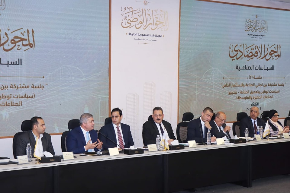 شارك المهندس محمد عبد الكريم رئيس الهيئة العامة للتنمية الصناعية ، في جلسة السياسات الصناعية والاستثمار الخاص في المحور الاقتصادي للحوار الوطني، لمناقشة قضية "سياسات توطين وتعميق الصناعة - تشجيع الصناعات الصغيرة والمتوسطة".