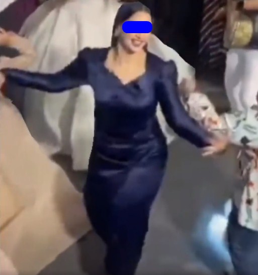 وقال ناصر جبري "صاحبة الفستان الأزرق تخرج عن صمتها وتعلق على مقطع الفيديو وهي ترقص في حفل زفاف"