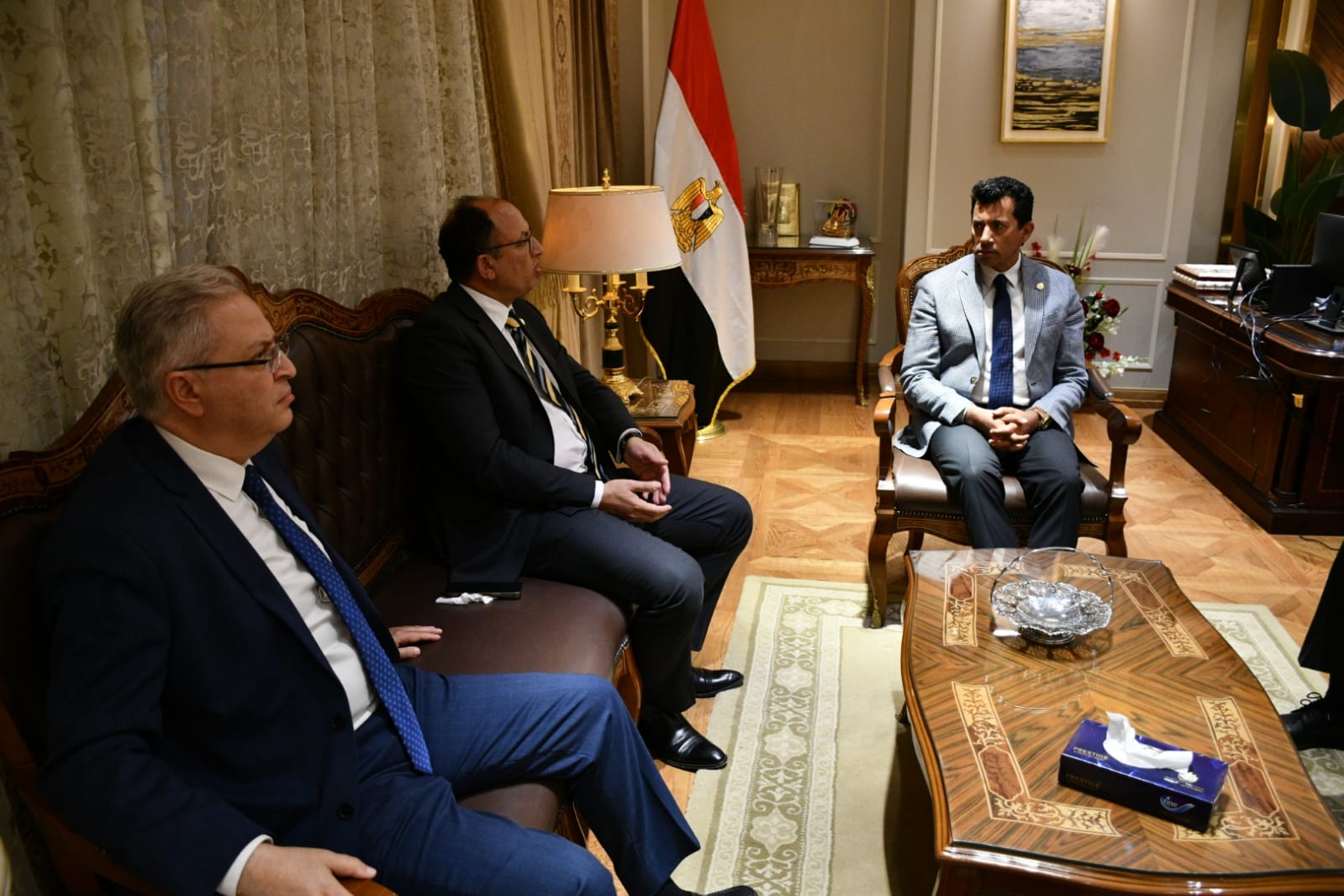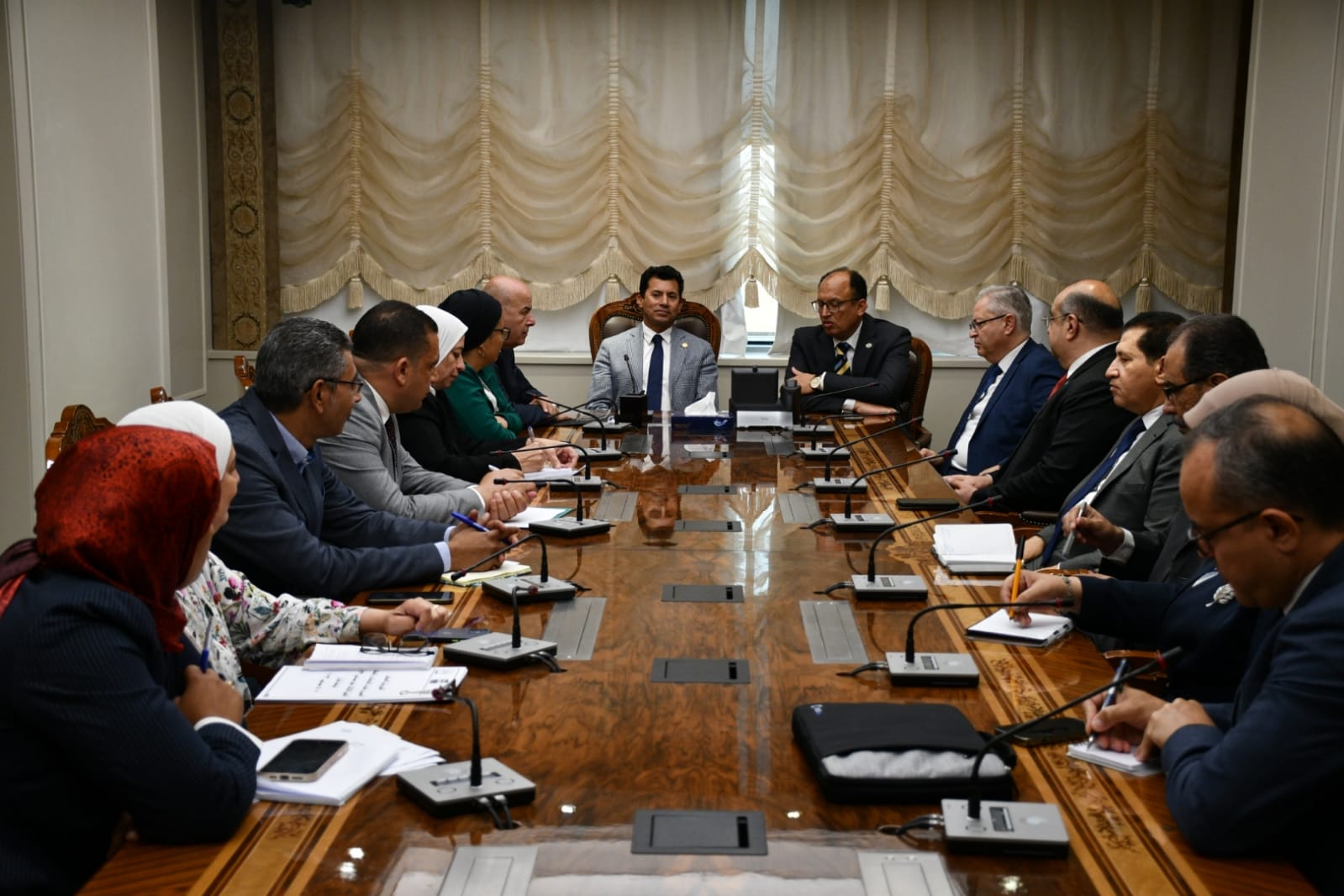 أشرف صبحي يلتقي رئيس جامعة حلوان لبحث استعدادات أسبوع شباب الجامعات