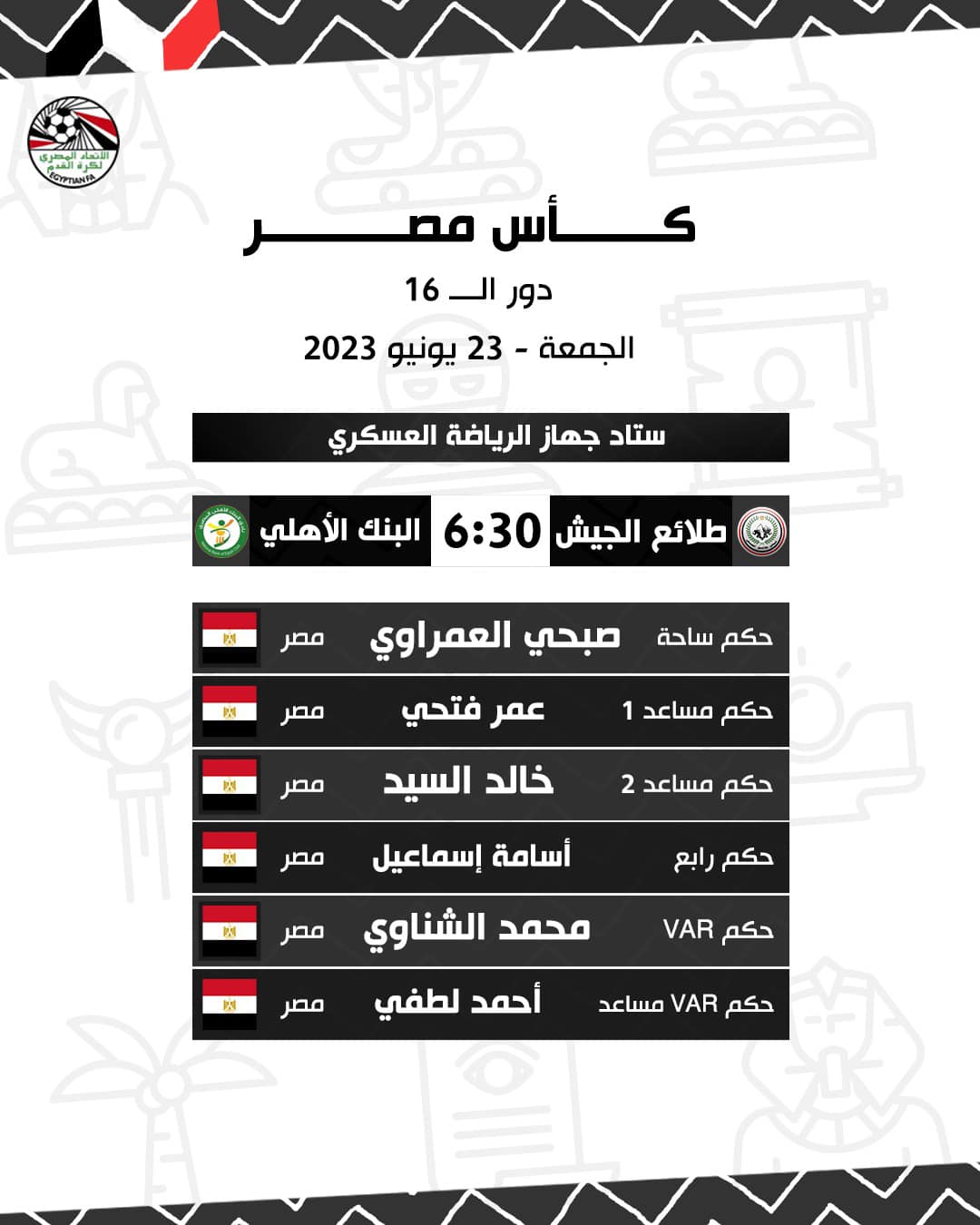 حكام مباراة طلائع الجيش والبنك الأهلي