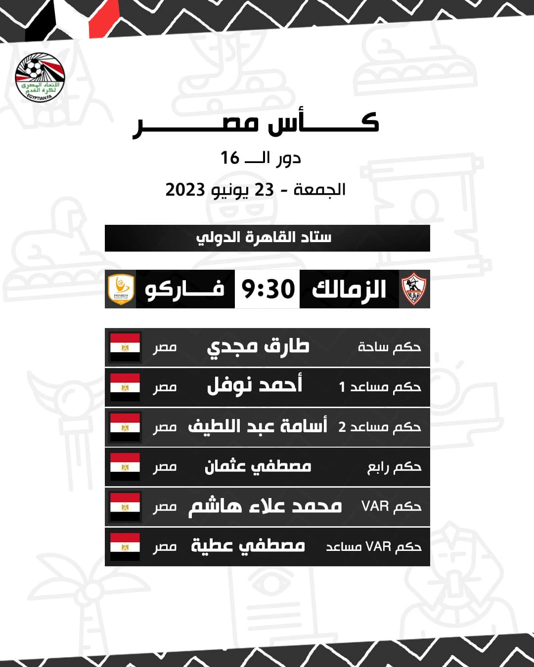 حكام مباراة الزمالك وفاركو