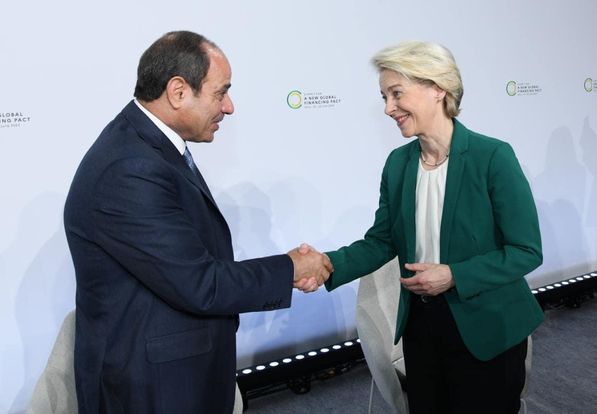 كما التقى الرئيس عبد الفتاح السيسي في باريس مع شارل ميشيل، رئيس المجلس الأوروبي، وذلك على هامش انعقاد قمة "ميثاق التمويل العالمي الجديد".