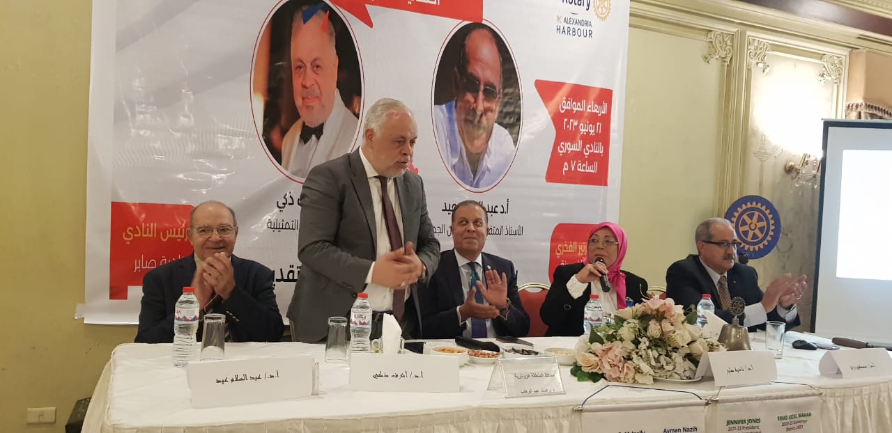 جاء ذلك فى احتفالية نادى روتارى هاربر الإسكندرية لتكريم كل من الدكتور عبد السلام عيد أستاذ الجداريات بكلية الفنون الجميلة بمناسبة حصوله على جائزة النيل للفنون، والدكتور أشرف ذكى نقيب المهن التمثيلية بمناسبة حصوله على جائزة الدولة التقديرية وذلك بمقر النادى السورى بمنطقة محطة الرمل.