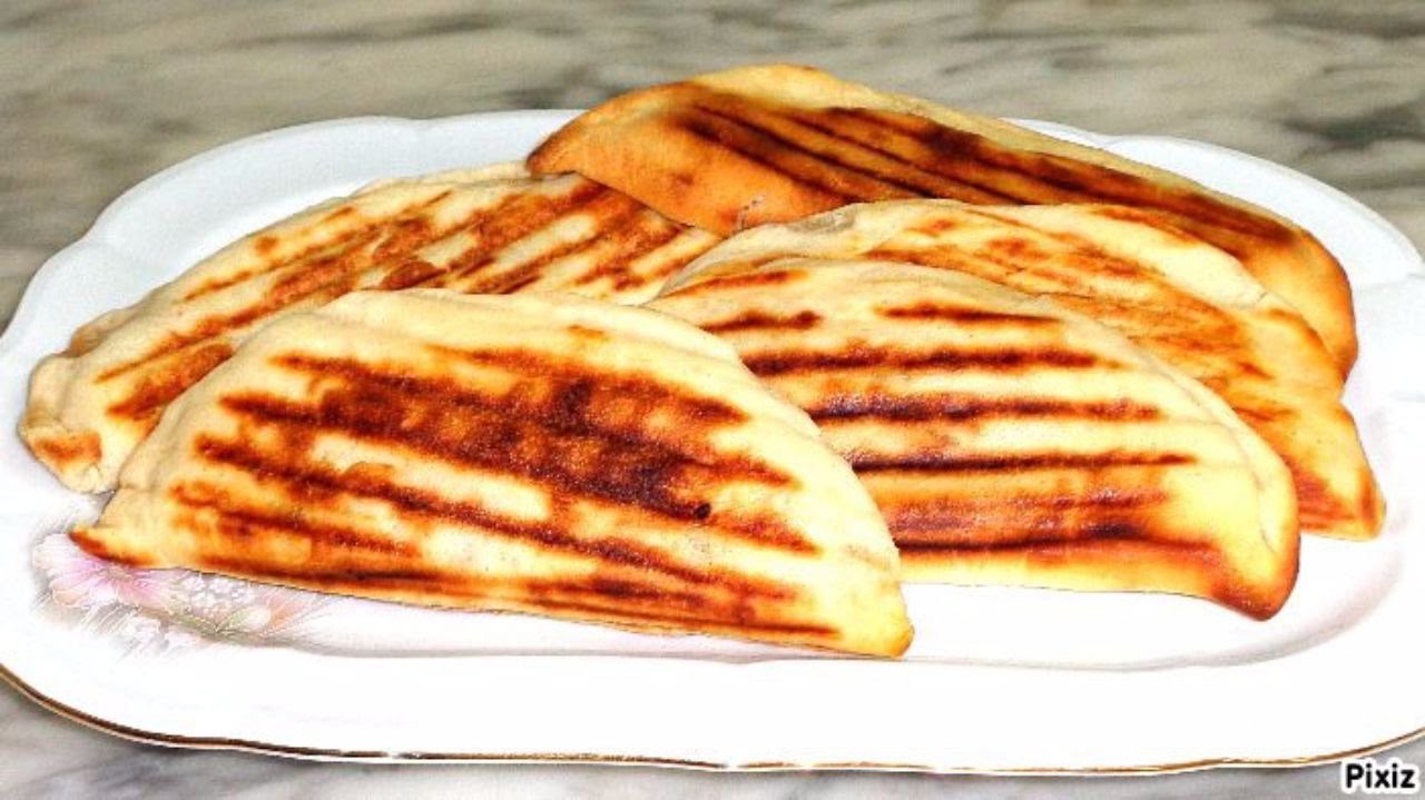 تخبز الفطيرات على طاسة على النار دون مادة دهنية لمدة ٣ دقائق من كل جانب.