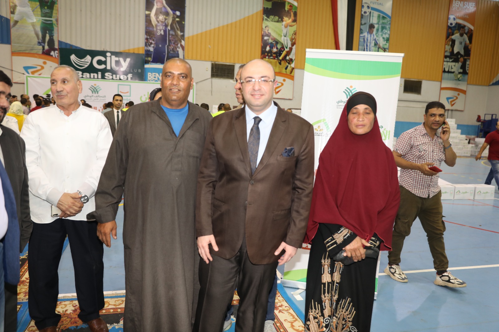 شهد الدكتور محمد هاني غنيم محافظ بني سويف، اليوم السبت، الاحتفالية التي تم تنظيمها، تحت مظلة التحالف الوطني للعمل الأهلي التنموي وبالتعاون بين جمعية الأورمان ومؤسستي حياة كريمة وأبو هشيمة الخير، وإشراف من مديرية التضامن الاجتماعي، لتسليم عقود تمويل لمشروعات تنموية صغيرة وتوزيع كراتين مواد غذائية ولحوم، ضمن مبادرة التمكين الاقتصادي للفئات الأولى بالرعاية.