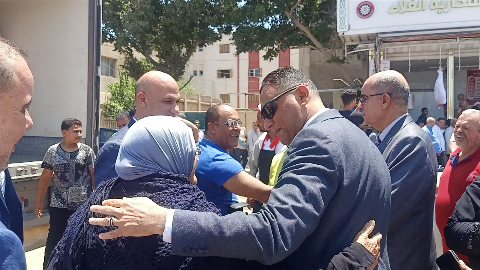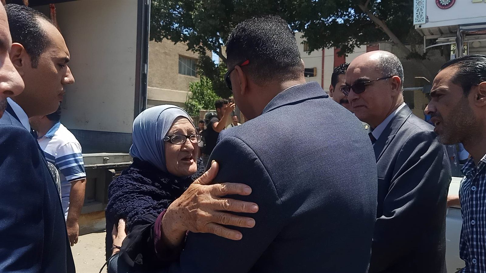 قبَّل الدكتور أيمن مختار محافظ الدقهلية رأس سيدة أثناء تواجدها أمام منفذ بيع اللحوم وحرصت علي أن تصافحه ووجهت له الكثير من الأدعية.