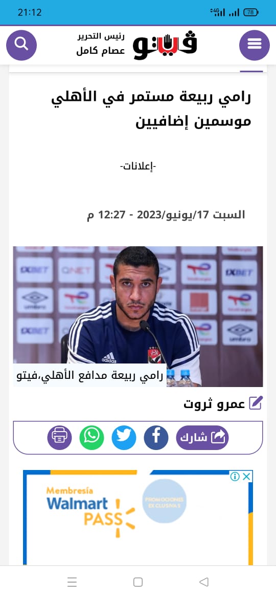 انفردت فيتو في وقت سابق بتجديد عقد رامي ربيعة مع فريقه الأهلي منذ أكثر من أسبوع، واليوم جدد اللاعب رسميا مع الفريق لمدة موسمين ليستمر اللاعب حتي يونيو 2025.
