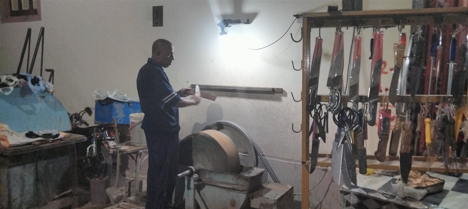 رصدت كاميرا «ڤيتو»، أقدم محل لسن السكاكين بأحد أقدم أحياء واحة الخارجة بمحافظة الوادي الجديد، وبالتحديد من حي السبط بمدينة الخارجة، استعدادًا لاستقبال عيد الأضحى المبارك.