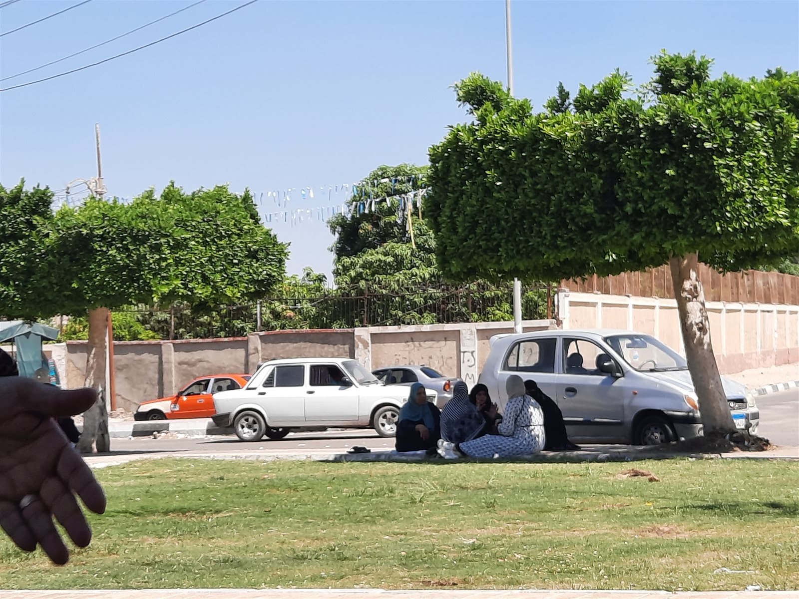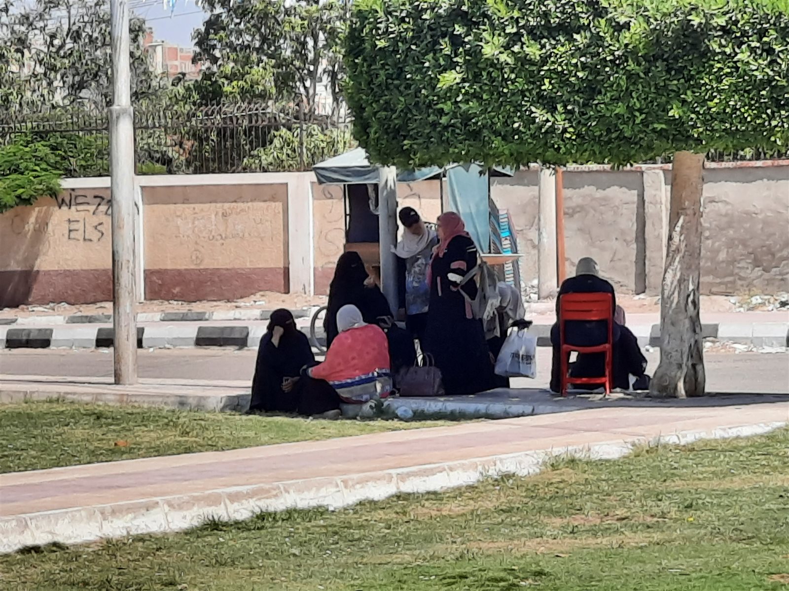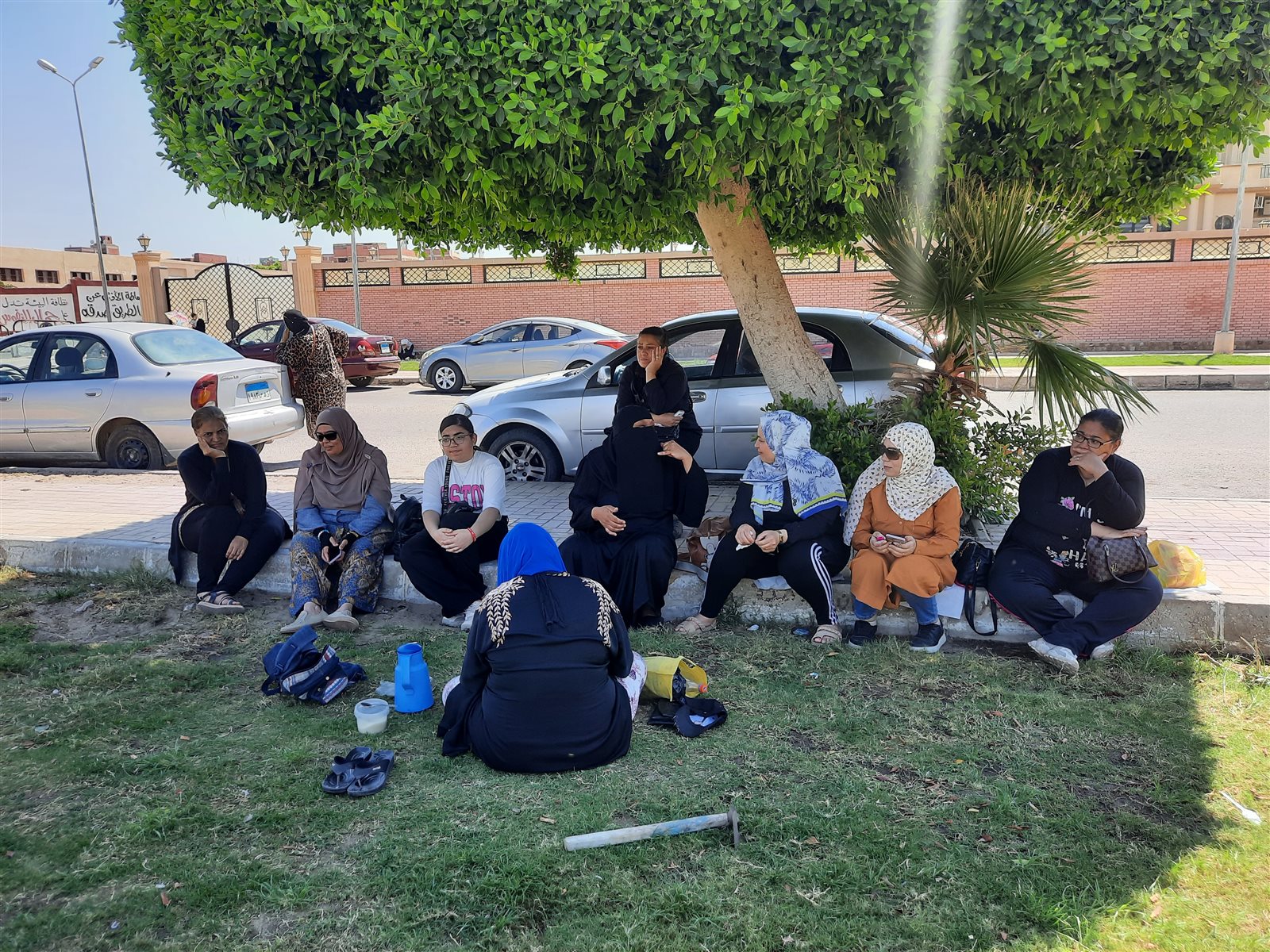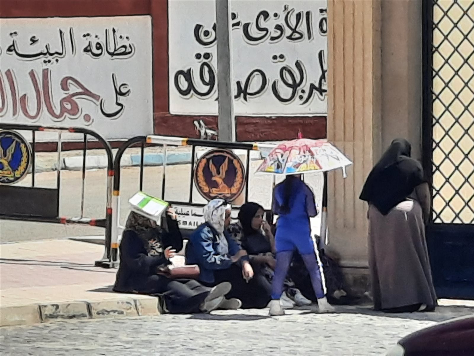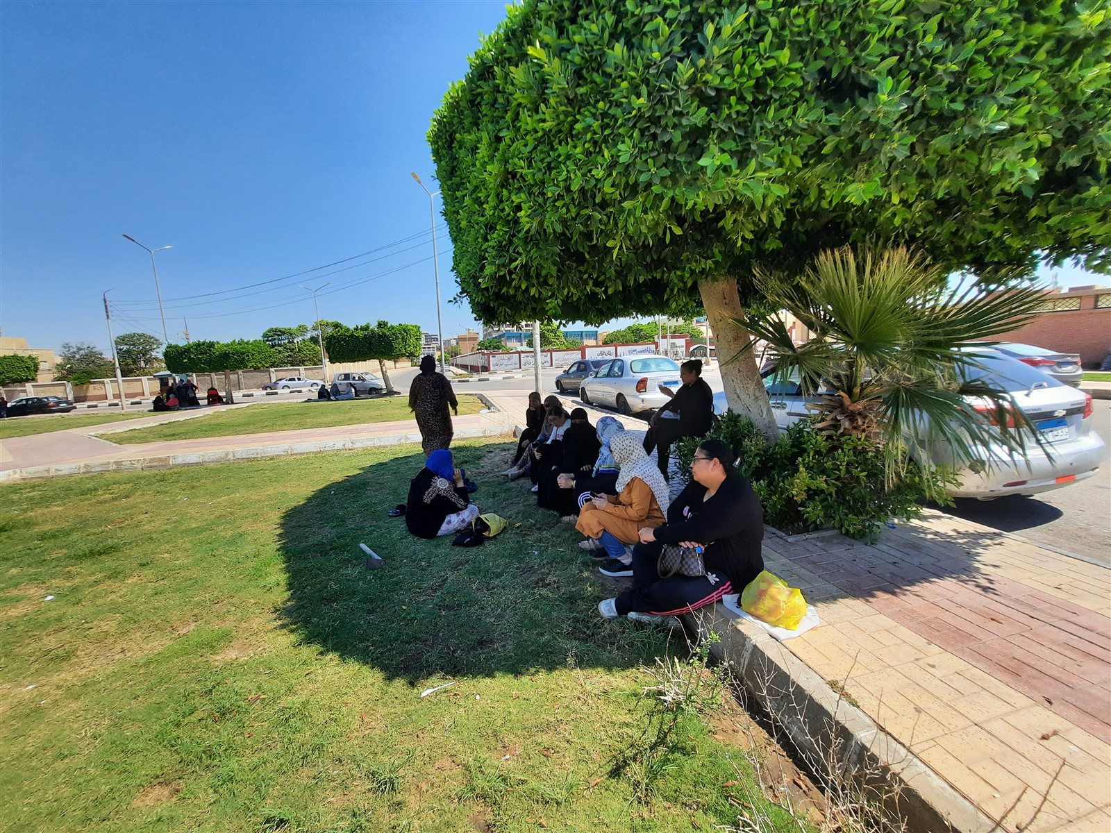 فيما جلس عدد من أولياء الأمور على الأرصفة بالشوارع وتحت الأشجار لتحميهم من حرارة الشمس الحارقة.