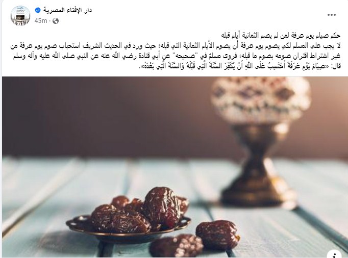 وجاءت فتوى دار الإفتاء ردًا على سؤال لأحد الأشخاص عن "حكم صيام يوم عرفة منفردًا؟"، حيث قال "سمعت أنه إذا أردت صيام يوم عرفة فإنه يلزمني الصيام من أول شهر ذي الحجة."