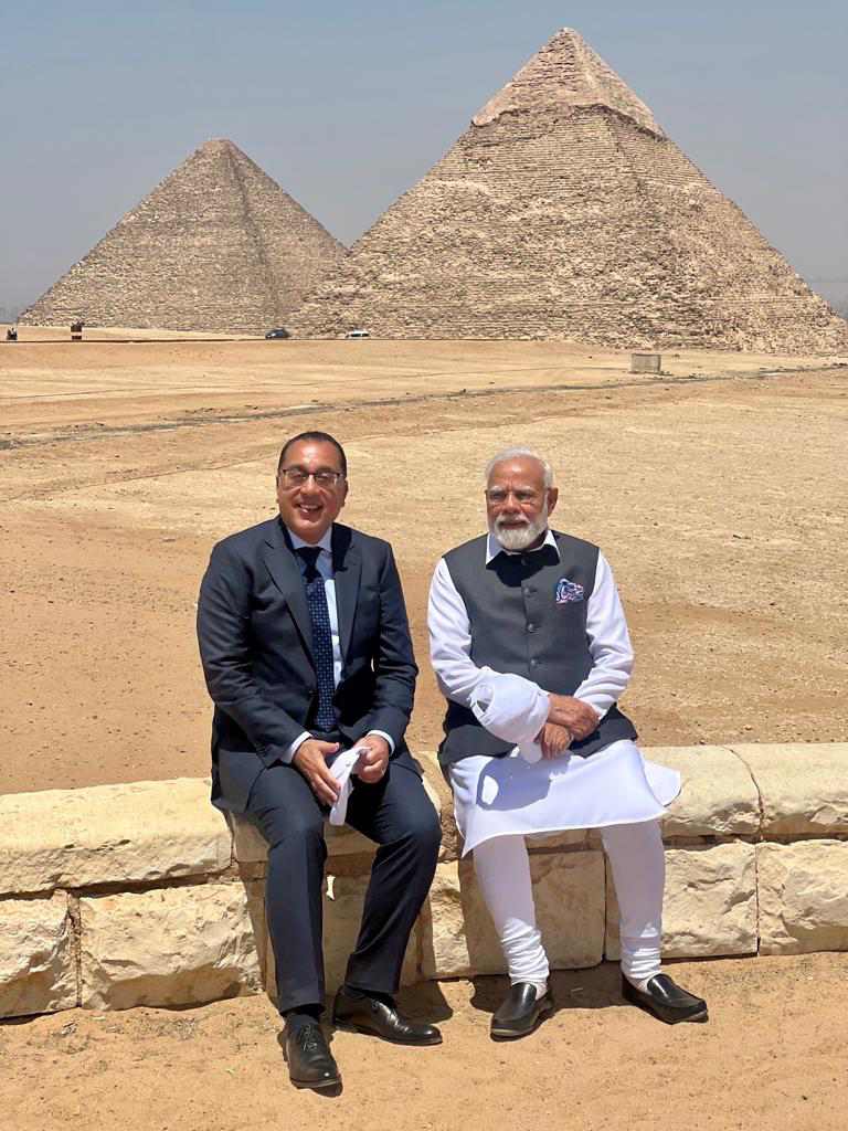 اصطحب الدكتور مصطفى مدبولي، رئيس مجلس الوزراء، ظهر اليوم، ناريندرا مودي، رئيس وزراء الهند، في جولة بمنطقة الأهرامات بالجيزة، في إطار زيارة الدولة التي يقوم بها إلى مصر بدعوة من الرئيس عبد الفتاح السيسى.