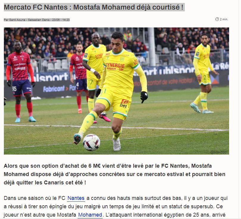 نانت يعلن عن تفعيل بند مصطفي محمد