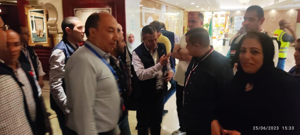 رافق رئيس البعثة خلال جولته كل من سامية سامي رئيس بعثة الحج السياحي وسيد خاطر مدير عام السياحة الدينية بوزارة السياحة والآثار ومحمود عبد الرازق مدير عام النقل السياحي بالوزارة وناصر تركي عضو اللجنة العليا للحج والعمرة وأحمد إبراهيم وهشام أمين عضوي اللجنة وعضوي مجلس إدارة غرفة شركات السياحة.