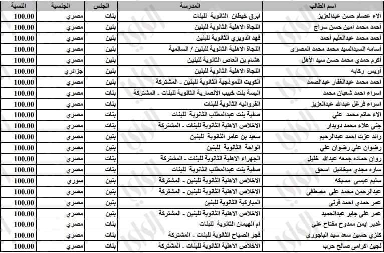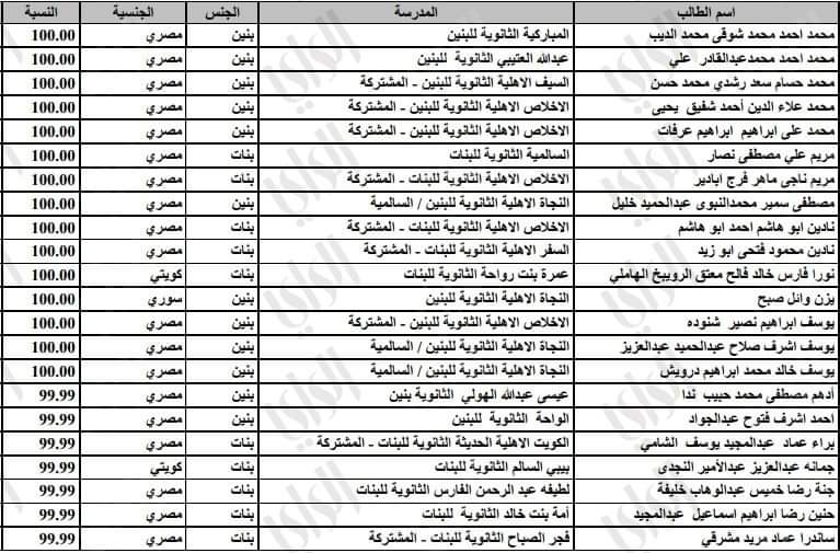وتصدر 33 طالبا مصريا أوائل نتيجة الثانوية العامة بالقسم العلمي في الكويت من أصل 37 طالبا من جميع الجنسيات.