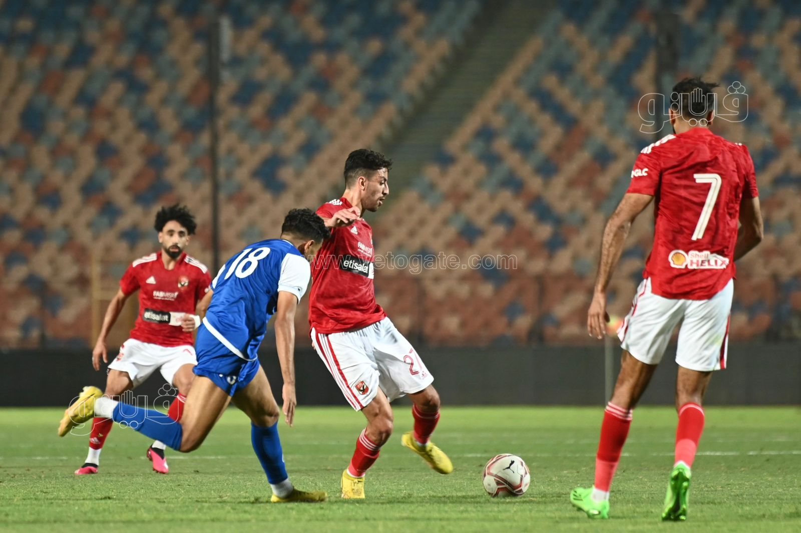 سيطر الأهلي على الكرة في منتصف الملعب عند انطلاق المباراة أمام منتخب السويس.