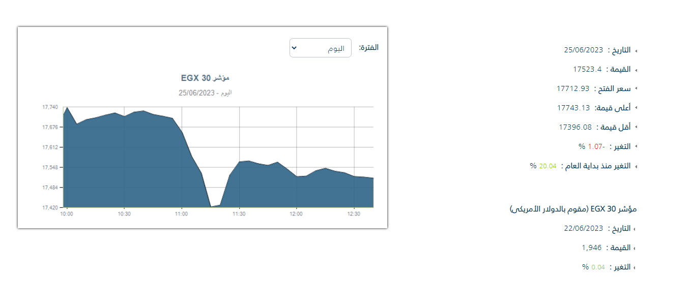تحليل مؤشرات البورصة المصرية في تعاملات اليوم الإثنين 26-6-2023