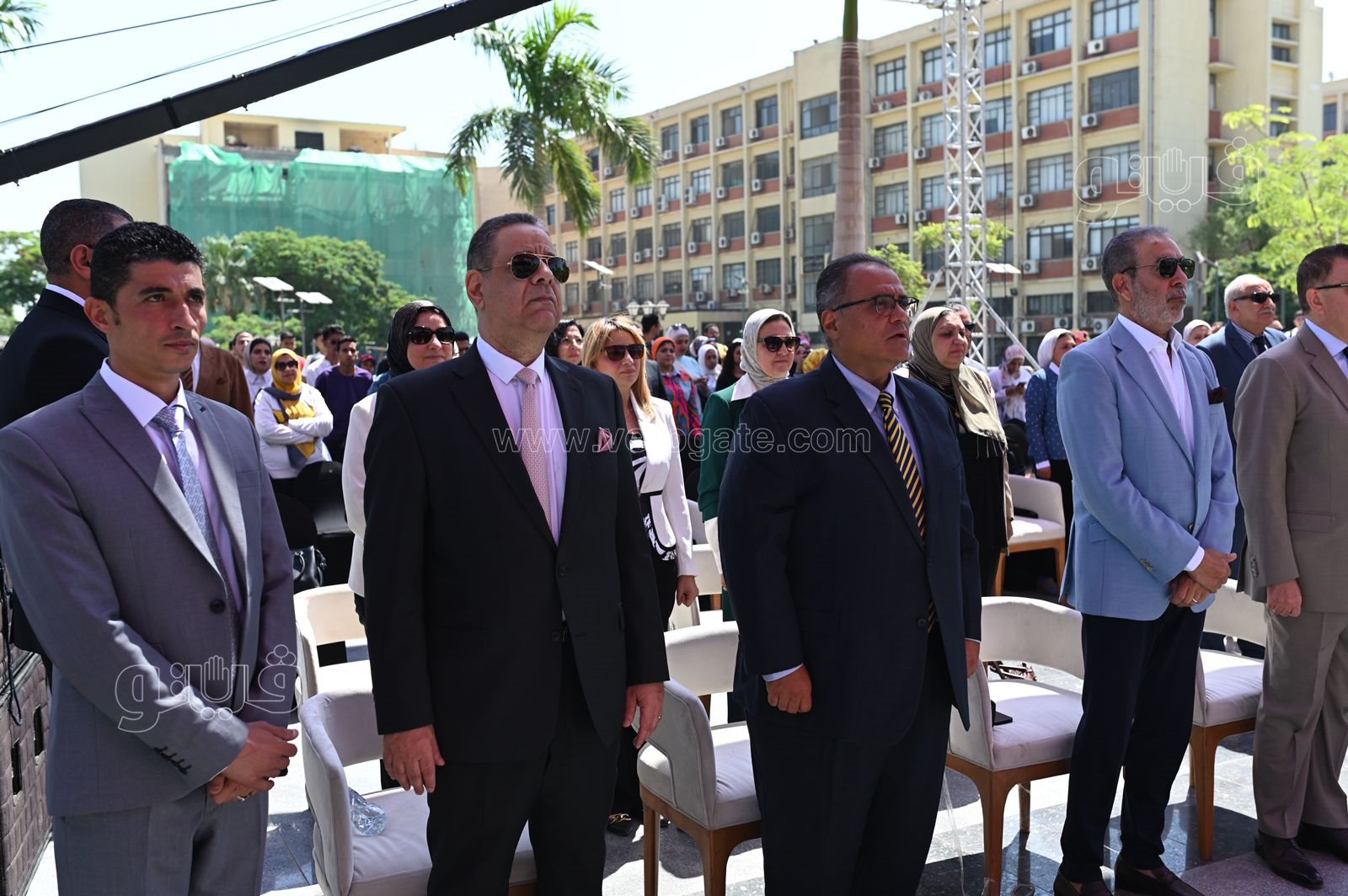 ويشهد الحفل الدكتور محمود المتينى رئيس الجامعة والدكتور عبد الفتاح سعود نائب رئيس الجامعة لشئون التعليم والطلاب والدكتور أيمن صالح نائب رئيس الجامعة لشئون الدراسات العليا والبحوث والدكتور غادة فاروق نائب رئيس الجامعة لشئون خدمة المجتمع وتنمية البيئة والسادة عمداء الكليات أعضاء مجلس الجامعة ولفيف من قيادات الجامعة والطلاب وذلك بمناسبة إنتهاء العام الجامعي ليكون تقليد مميز لجامعة عين شمس فى إحتفال طلابها بانتهاء عام جامعى.