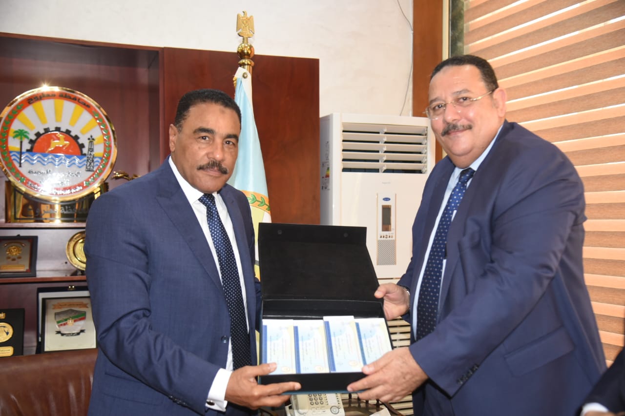 ومن الدقهلية إلى جنوب سيناء حيث التقى الأستاذ علاء فاروق اللواء خالد فودة محافظ جنوب سيناء، وجرى خلال اللقاء تسليم مساهمات البنك لصرف السلع والمواد الغذائية للأسر الأولي بالرعاية من أبناء المحافظة، كما تناول اللقاء دور البنك في دعم وتمويل المشروعات الصغيرة ومتناهية الصغر لتمكين الشباب والمرأة البدوية بما يسهم في توفير فرص العمل ورفع مستوى معيشة أبناء المحافظة.