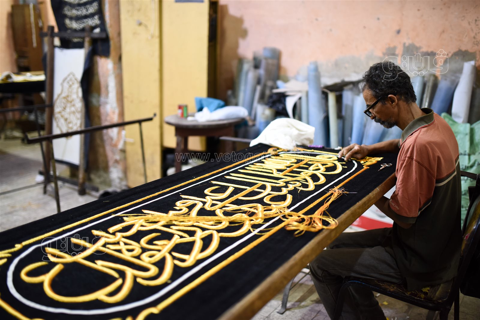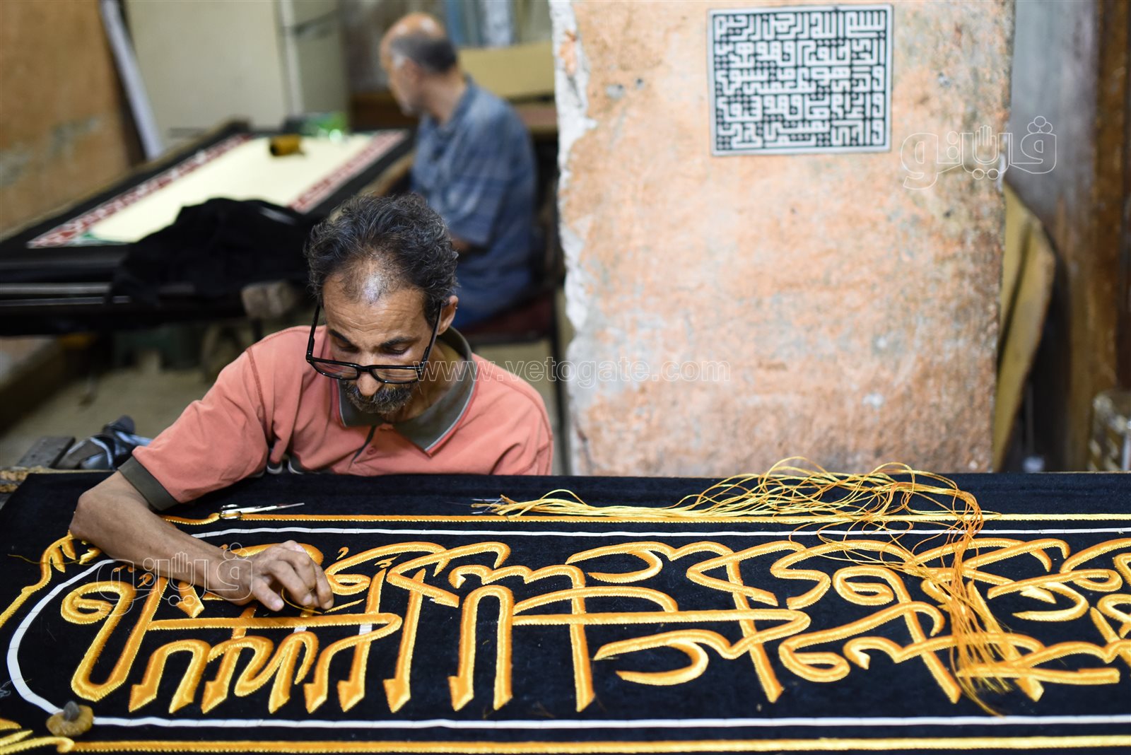 قال صبحي محمد صالح صاحب المصنع الذي يعمل حاليًا في صناعة اللوحات القماشية المطرزة بالآيات القرآنية أن مهنة صناعة كسوة الكعبة تعود لاكثر من ألف سنة حيث كلفت مصر بكسوة جدار الكعبة الشريفة، مؤكدًا انه ومع مرور السنين تغير الشكل الذي يتم به صناعته حتي وصلت إلى شكلها الأن.