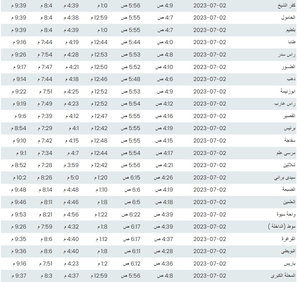 مواقيت الصلاة اليوم بتوقيت أسيوط