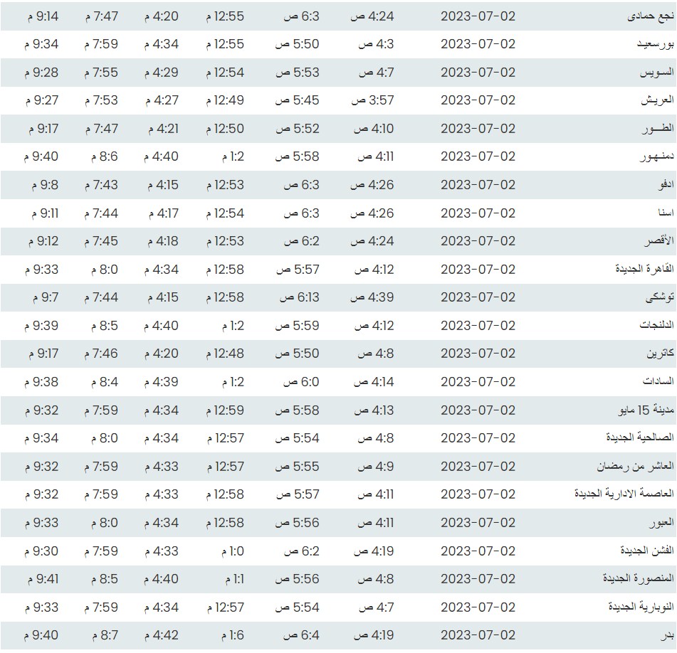 مواقيت الصلاة اليوم بتوقيت القاهرة