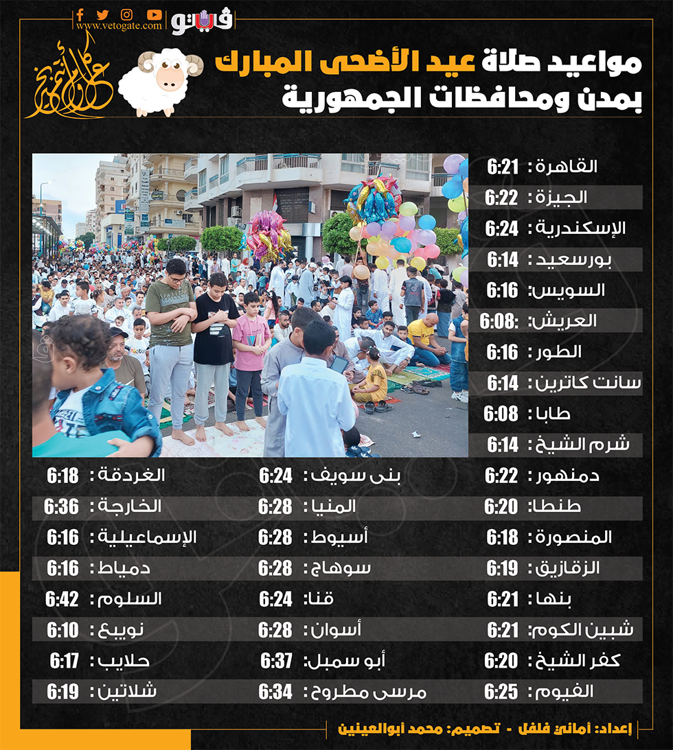 وجاءت مواعيد صلاة عيد الأضحى في المحافظات كالتالى: