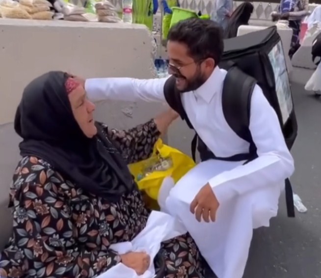 قام الشاب بتقبيل رأس السيدة العجوز، في لحظة مؤثرة بدت وكأنها معجزة الله لكي تقر عينها، وأخذ الشاب يتحدث إلى السيدة المصرية المُسنة التي أخذت تبكي لتذكرها ابنها المتوفى، أخبرته العجوز بأمر ابنها الذي توفي، فتأثر الشاب كثيرًا بدموع العجوز، وأخبرها بأنه سيعطيها رقم هاتفه، ليتواصل معها، وسيقوم بزيارتها في مصر قريبًا، وسألها الشاب عن مكان إقامتها وأخبرته أنها من سكان محافظة الجيزة.