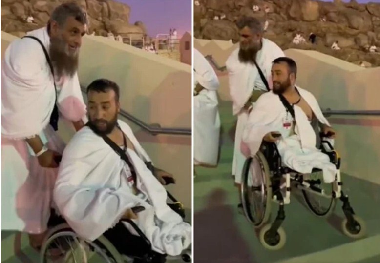 حاج معاق يدفع قعيد للصعود لبيت الله الحرام