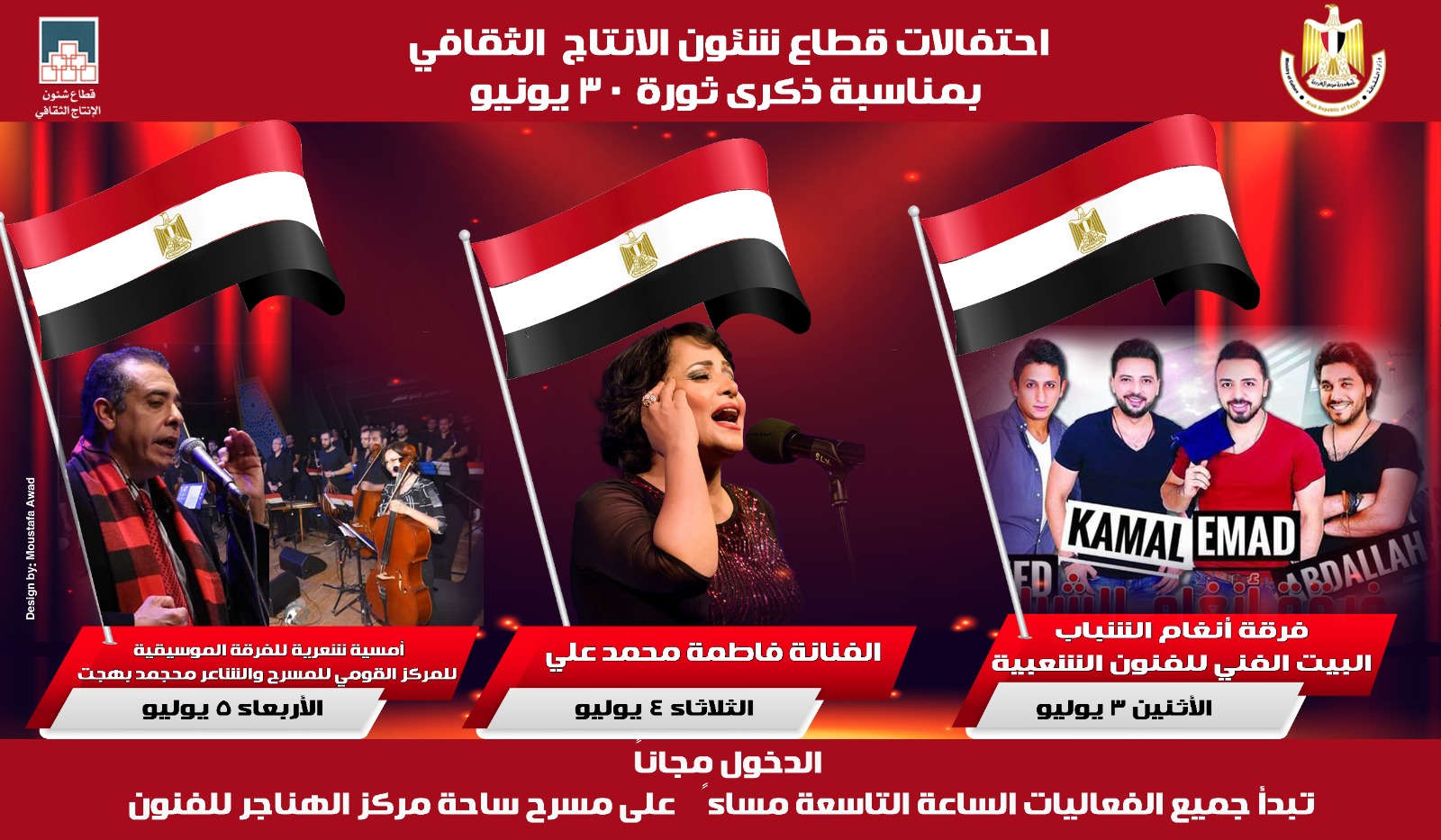 خريطة فعاليات الإنتاج الثقافي احتفالا بذكرى ثورة 30 يونيو